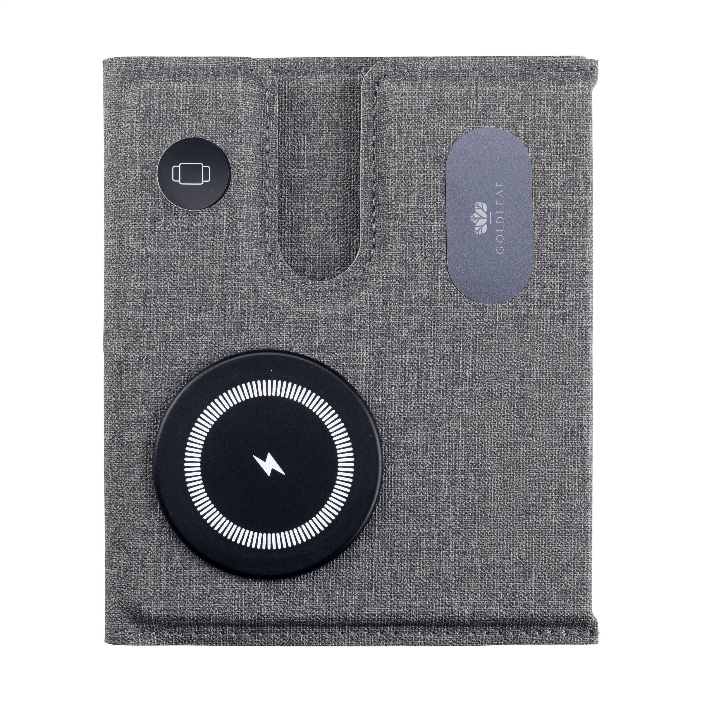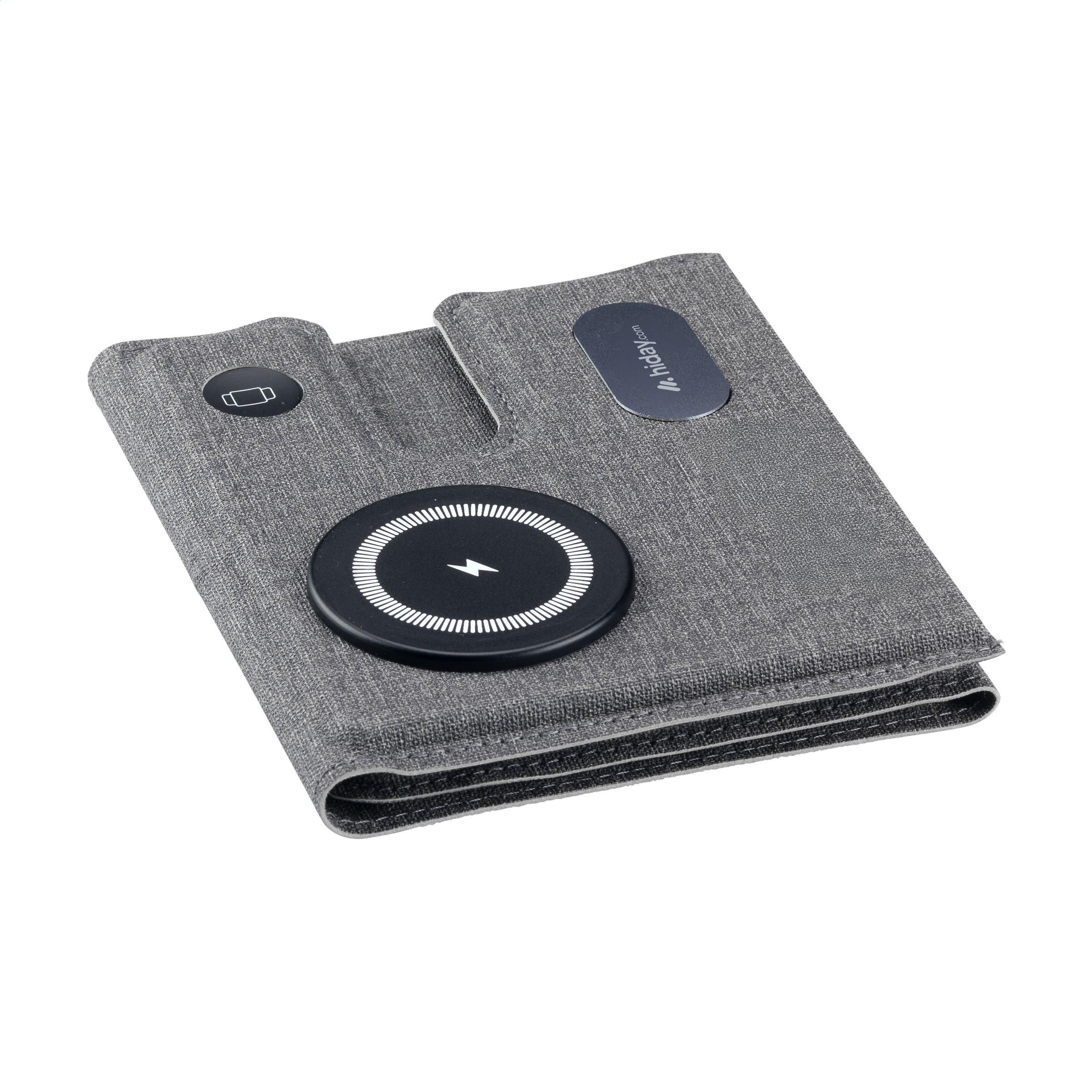 Magnetisches, kabelloses 3-in-1-Ladegerät (15 W) aus recyceltem ABS und recyceltem PU mit grauem Mischmuster. Diese Ladestation unterstützt schnelles kabelloses Laden: 15 W für ein Mobiltelefon, 2,5 W für Ihre iWatch und 3 W für TWS-Kopfhörer. Eingang: 1 x USB-C 9V/3A. Das eingebaute, magnetische Schnellladegerät ist mit allen Geräten kompatibel, die kabelloses Laden nach Qi unterstützen. Stellen Sie diese Dockingstation auf Ihren Schreibtisch und Ihr Arbeitsplatz bleibt aufgeräumt und Ihre Geräte geladen. Zusammenklappbar und leicht zu transportieren. Inklusive USB-C/USB-C-Ladekabel und Gebrauchsanweisung. RCS-zertifiziert. Gesamtes recyceltes Material: 49%.