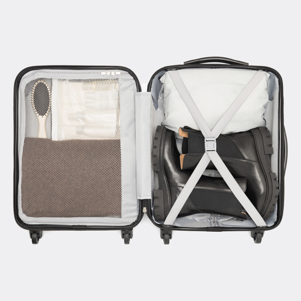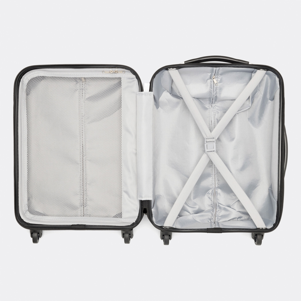 Trolley-Bordcase ST. TROPEZ: beidseitige Packmöglichkeiten, Koffer-Innenraum komplett gefüttert mit Packtrennwand und Packgurt, arretierbares und versenkbares Trolleygestell, 2 Tragegriffe, 4 seitliche Füße, 4-Rollen-360°-Leichtlauf-Fahrwerk, Zahlenkombinationsschloss – boarding size für Low-Budget-Fluglinien geeignet