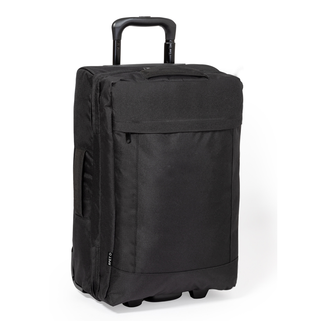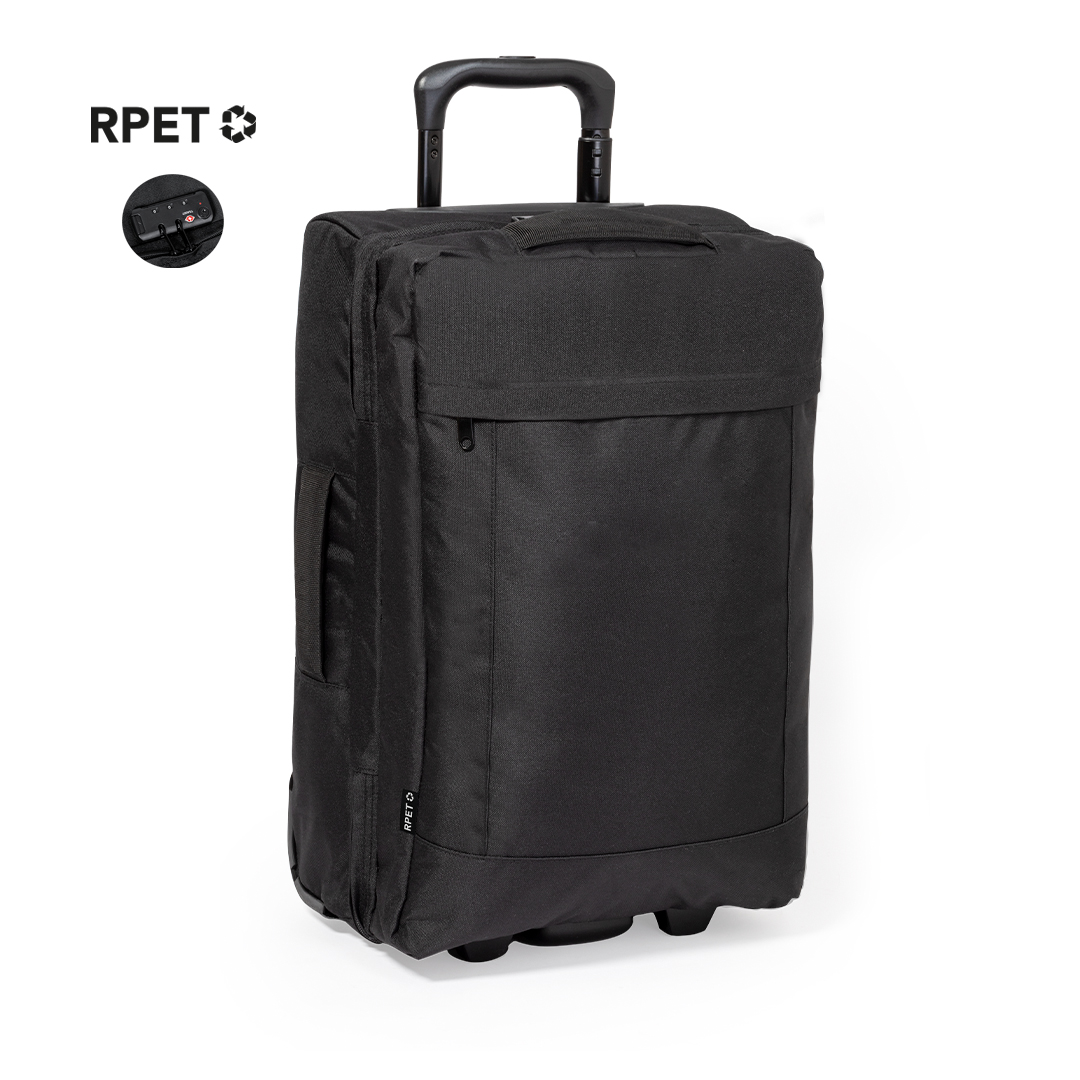 Trolley aus robustem 600D RPET. Hauptfach mit doppeltem Reißverschluss nach TSA-Standards, Transport Security Management, das es den Zollbehörden ermöglicht, den Inhalt des Gepäcks zu inspizieren, ohne die Öffnung zu erzwingen oder das Schloss zu brechen, mit einem speziellen Schlüssel, der der Behörde zur Verfügung steht. Gefütterter Innenraum plus Organizer im mittleren Bereich. Außen mit Fronttasche mit unsichtbarem Reißverschluss und 2 gepolsterten Tragegriffen. Erweiterbarer Metallmechanismus in schwarz, mit komfortablem Tragegriff und 2 Rädern. Außen RPET-Label. RPET-Material besteht aus recyceltem Kunststoff und fördert so die Wiederverwendung von Kunststoffabfällen und trägt zur Nachhaltigkeit des Planeten bei.