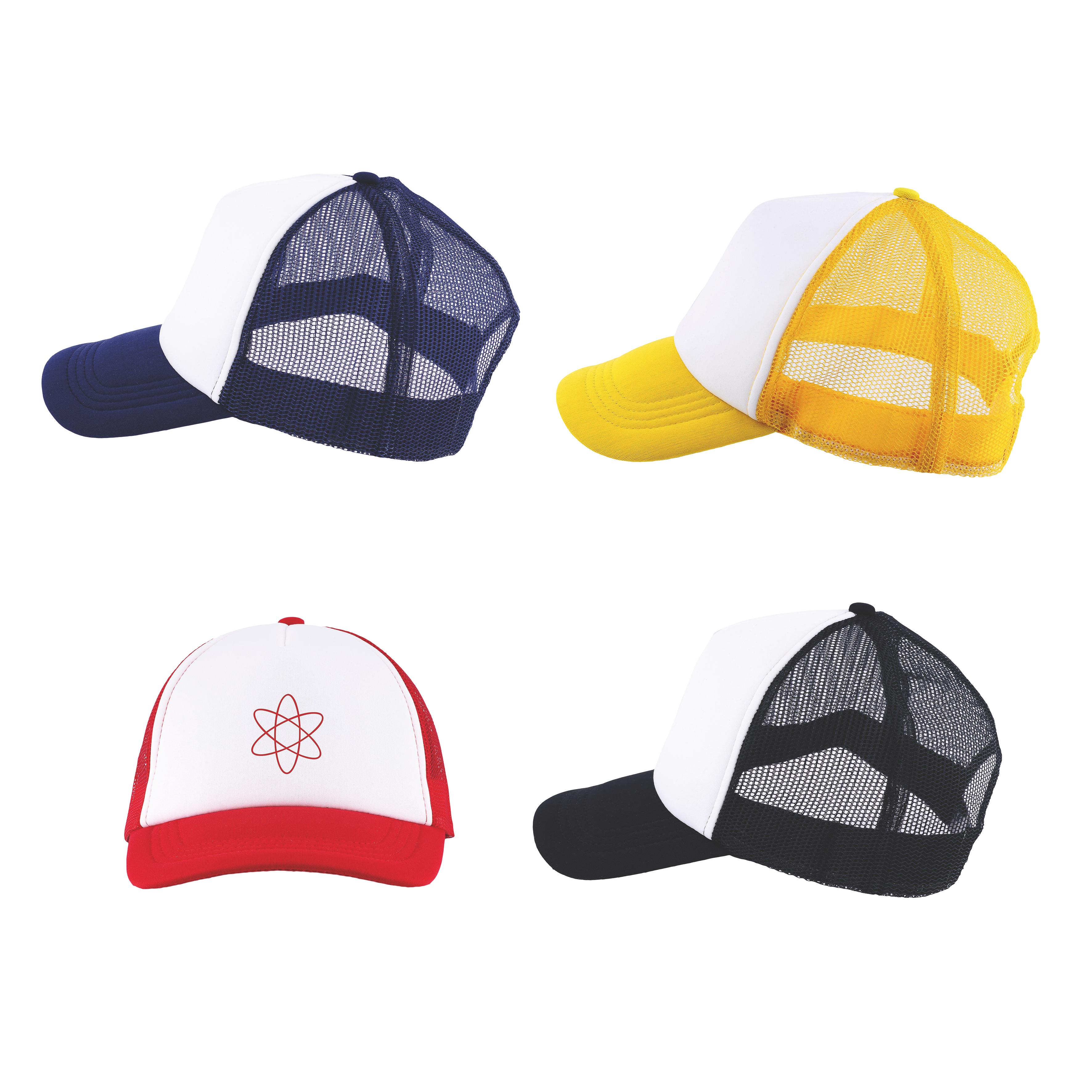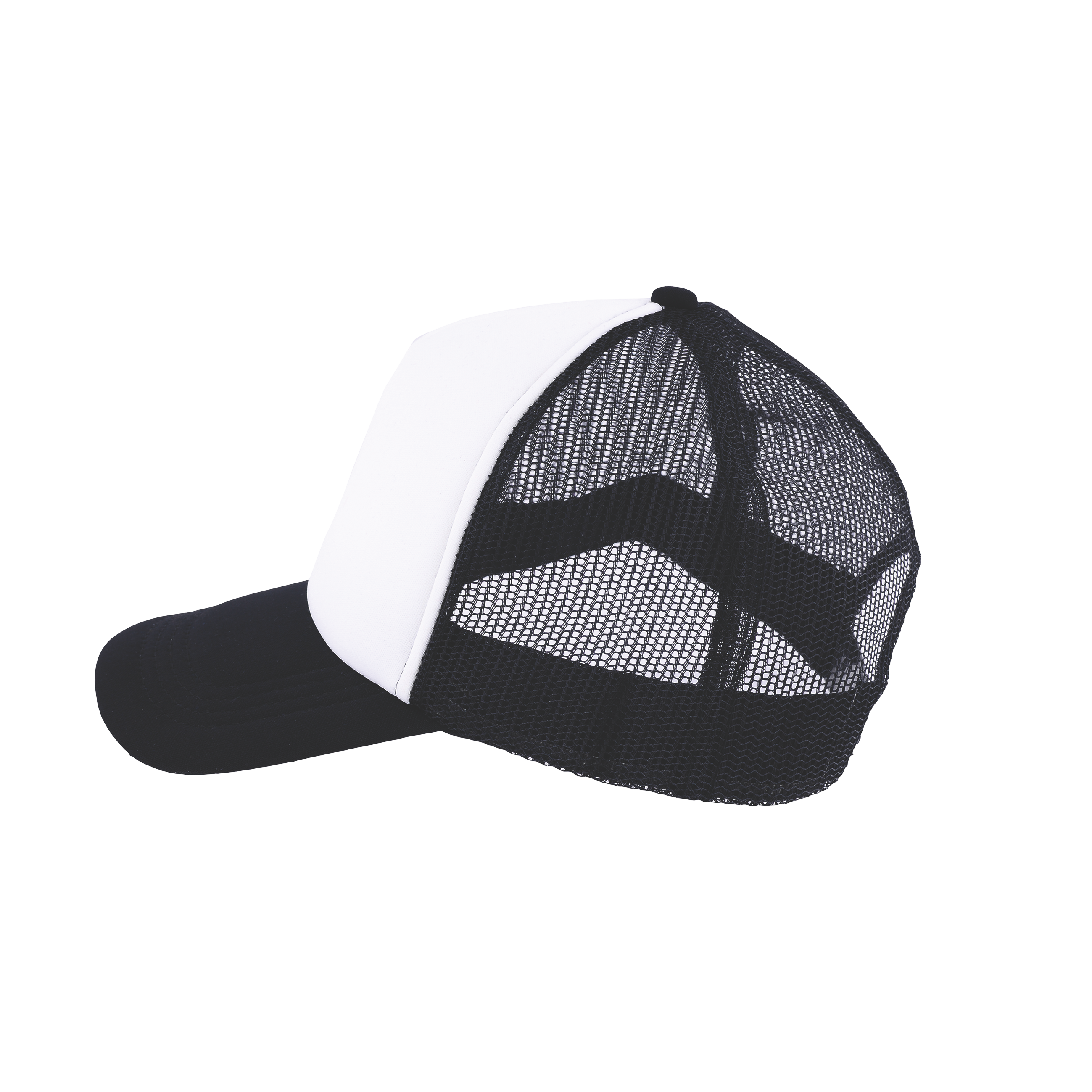 Trucker Cap - 5 Panel Cap mit Kunststoffverschluss. Bestehend aus einem Materialmix (Schaum, Leinen, Nylon und EVA-Elemente)