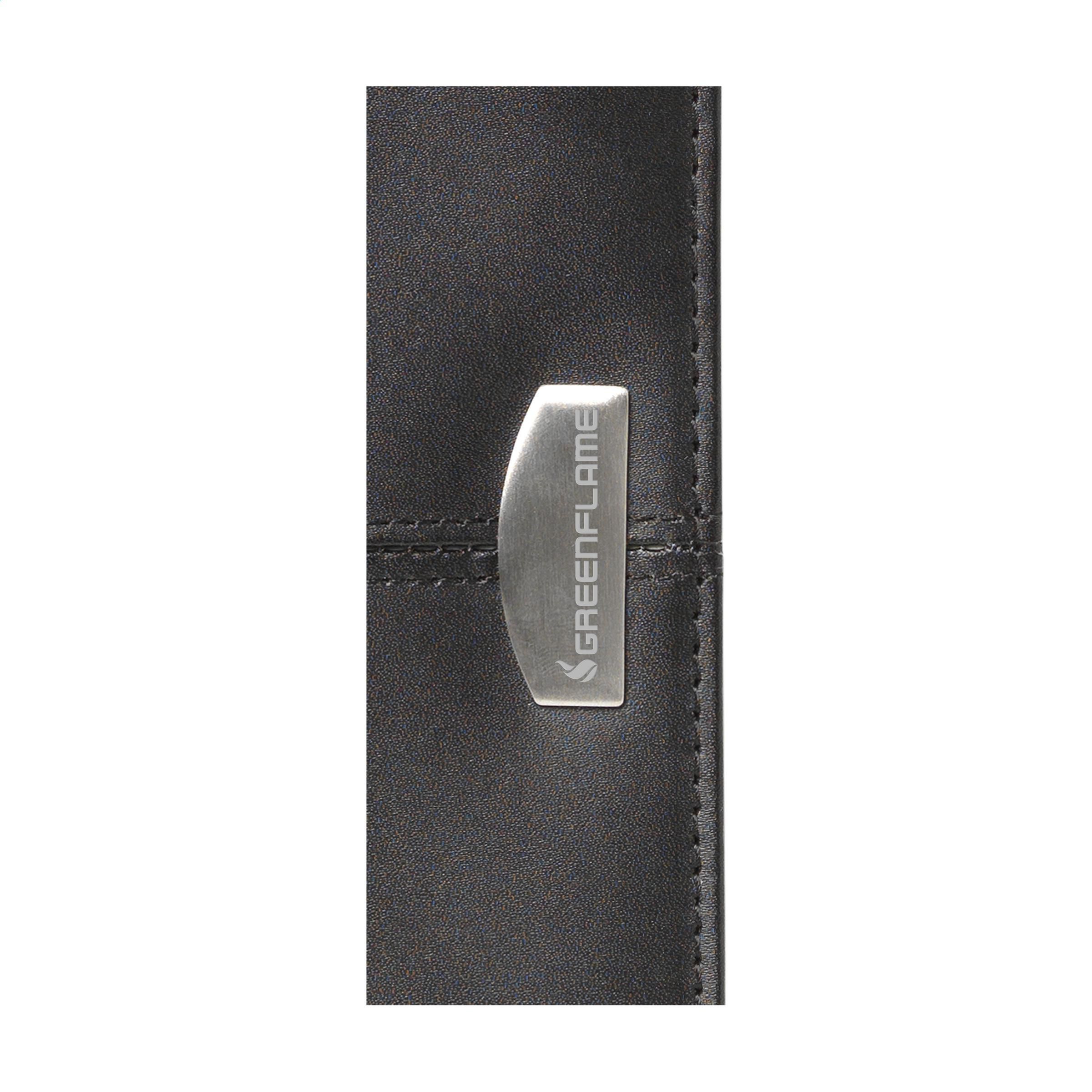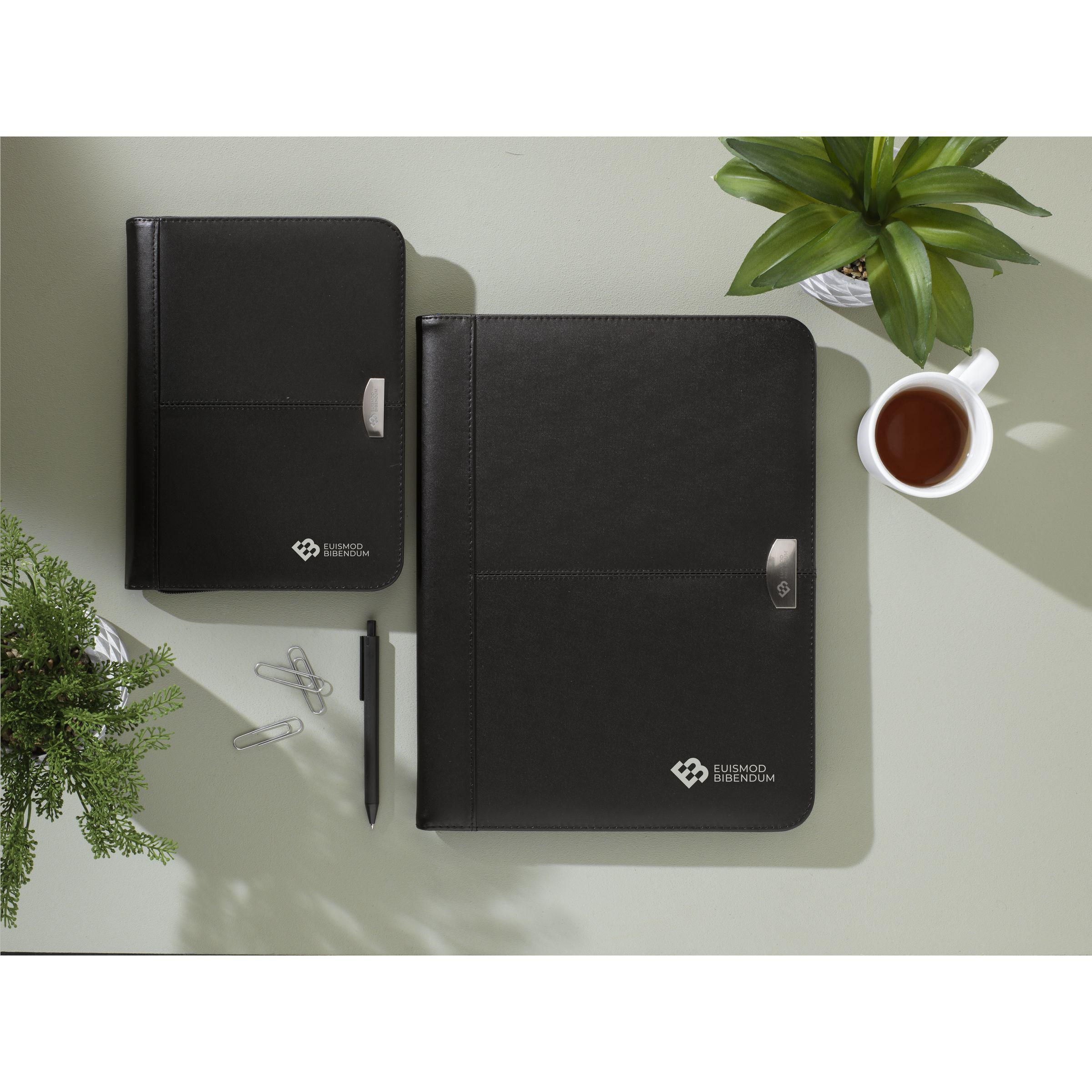 Schreibmappe/Dokumentenmapp aus fein gebundenem Leder, im DIN A5-Format. Mit diversen Einsteckfächern und Rundum-Reißverschluss. Inkl. FSC Mix zertifiziertem Schreibblock und Kugelschreiber.