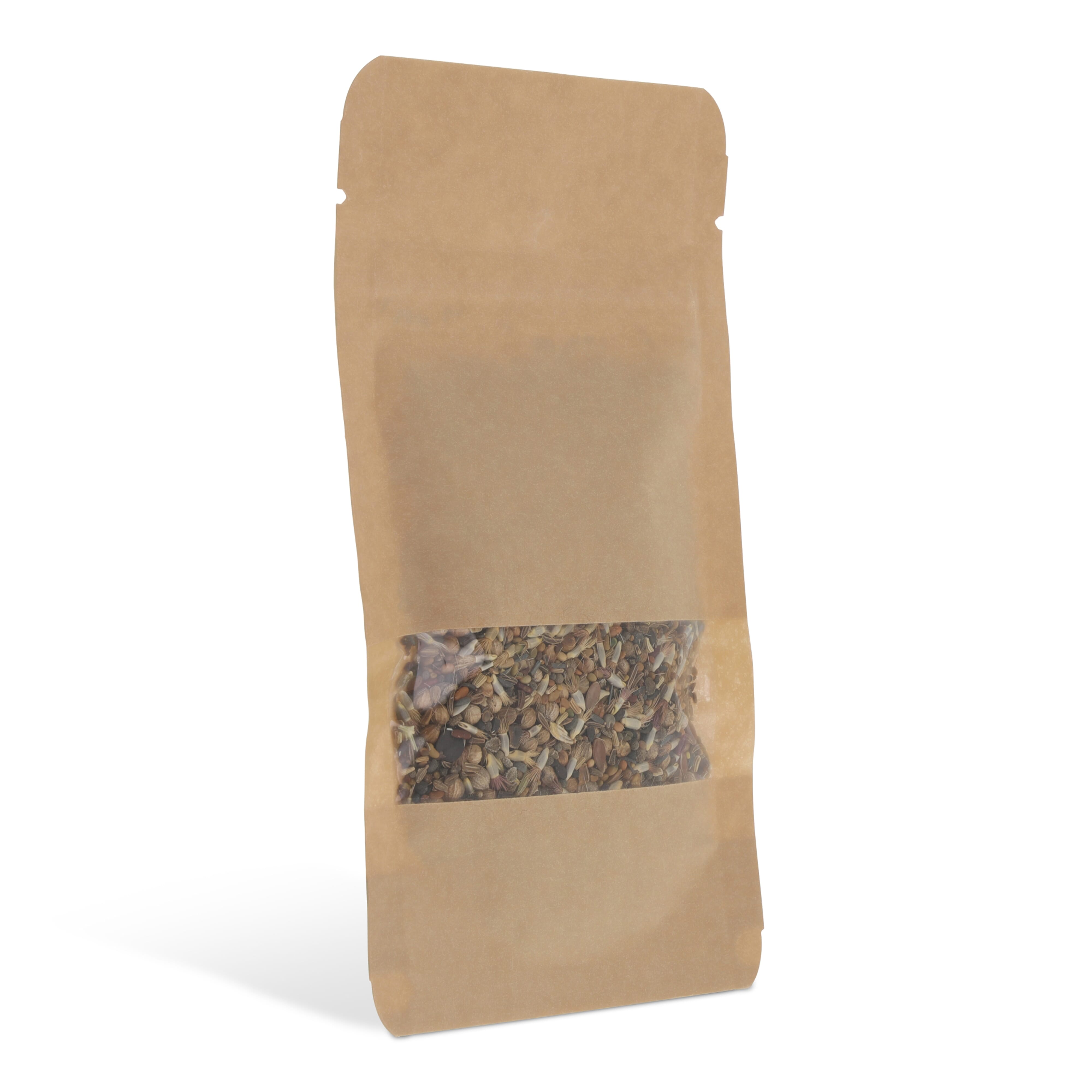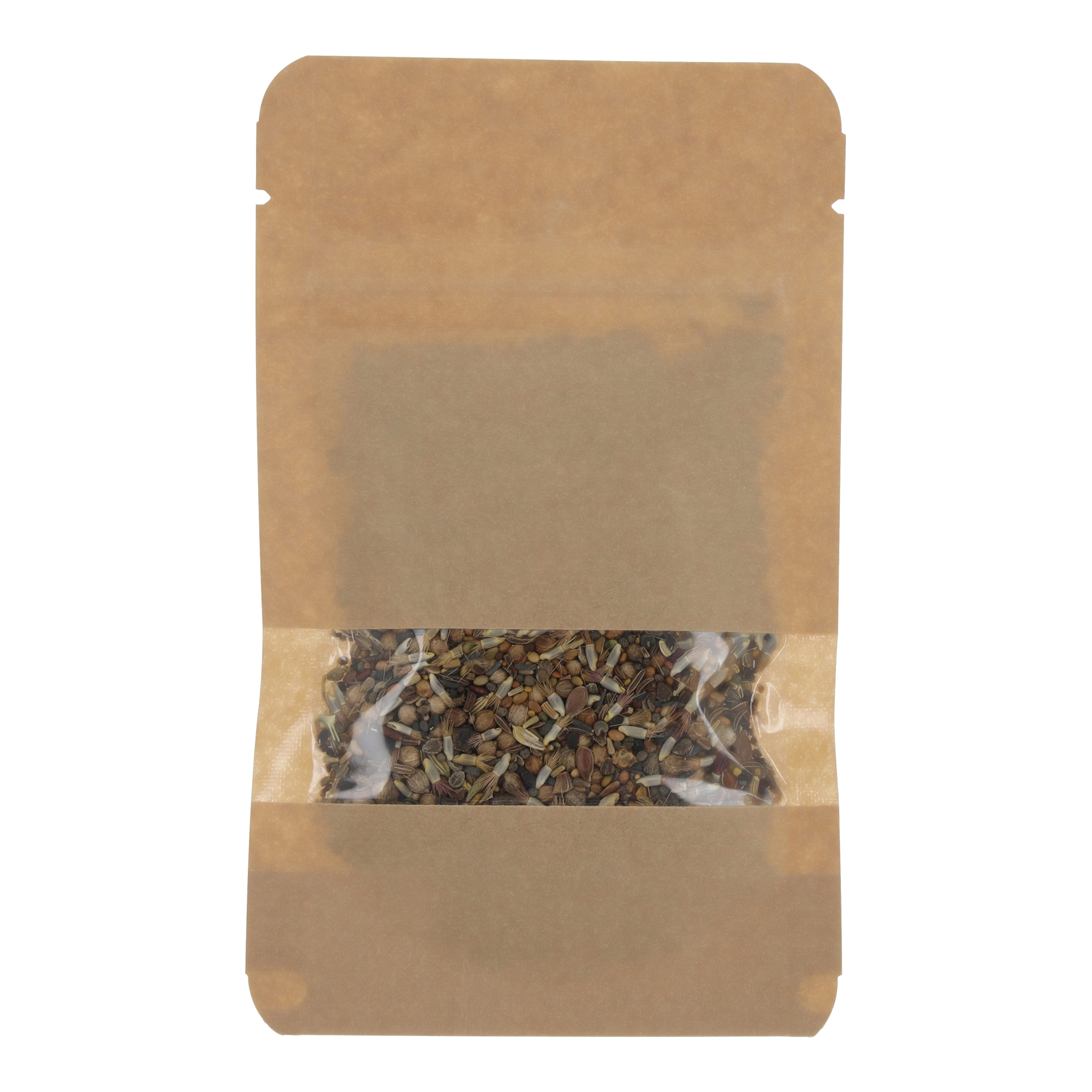 Kraftpapiertüte mit 4 Gramm Wildblumensamen, geeignet für 2 m² Blumen. Ein wirklich nachhaltiges Geschenk.