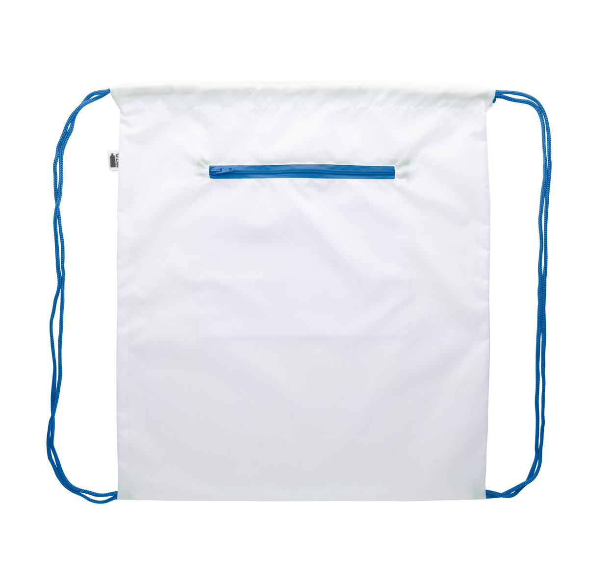 Individueller Turnbeutel mit Kordelzug und Fach mit RFID-Schutz mit Reißverschluss, Material: 190T RPET-Polyester. Der Preis ist inkl. Sublimationsdruck und RPET-Label. Mindestmenge: 25 Stk.