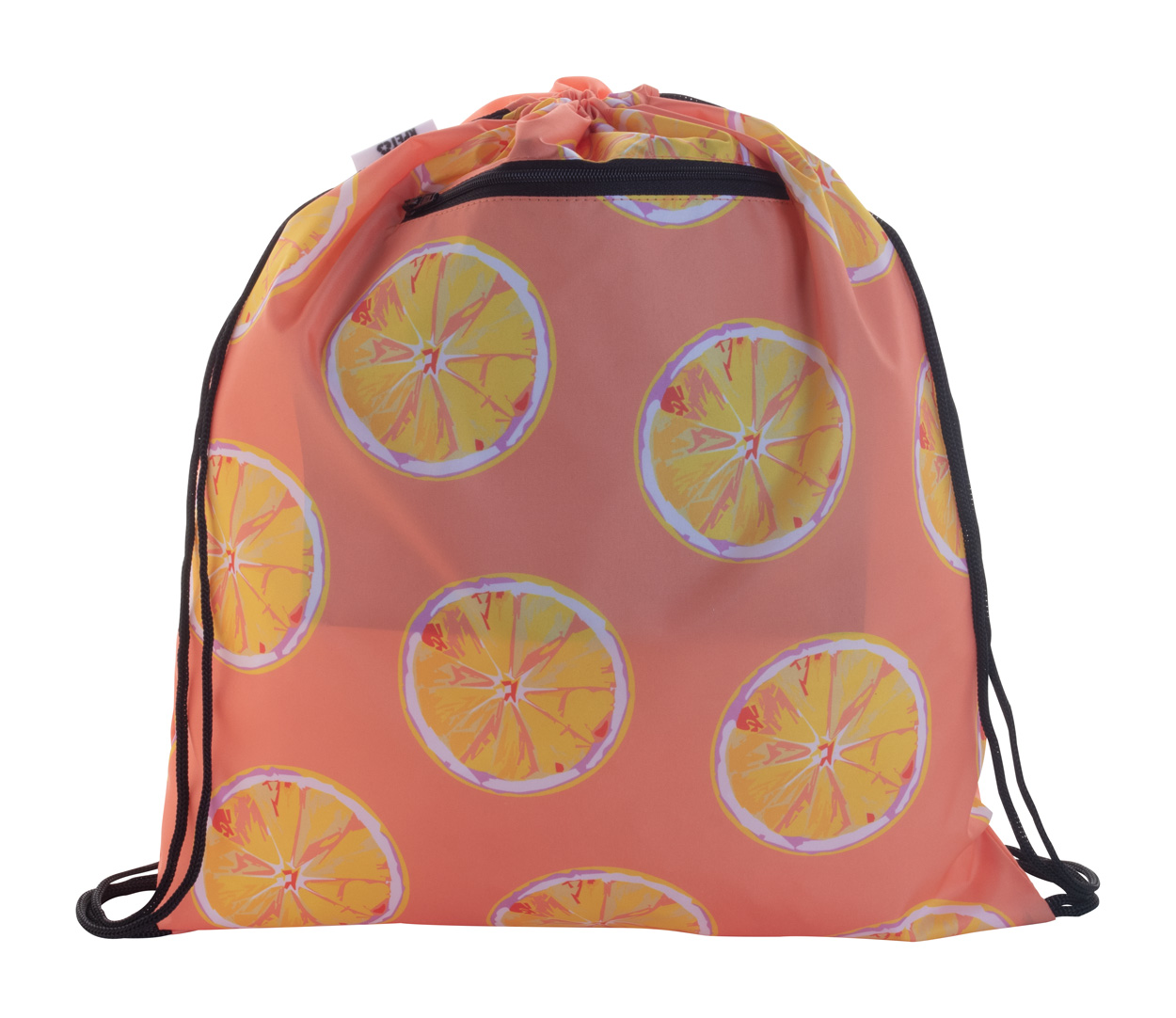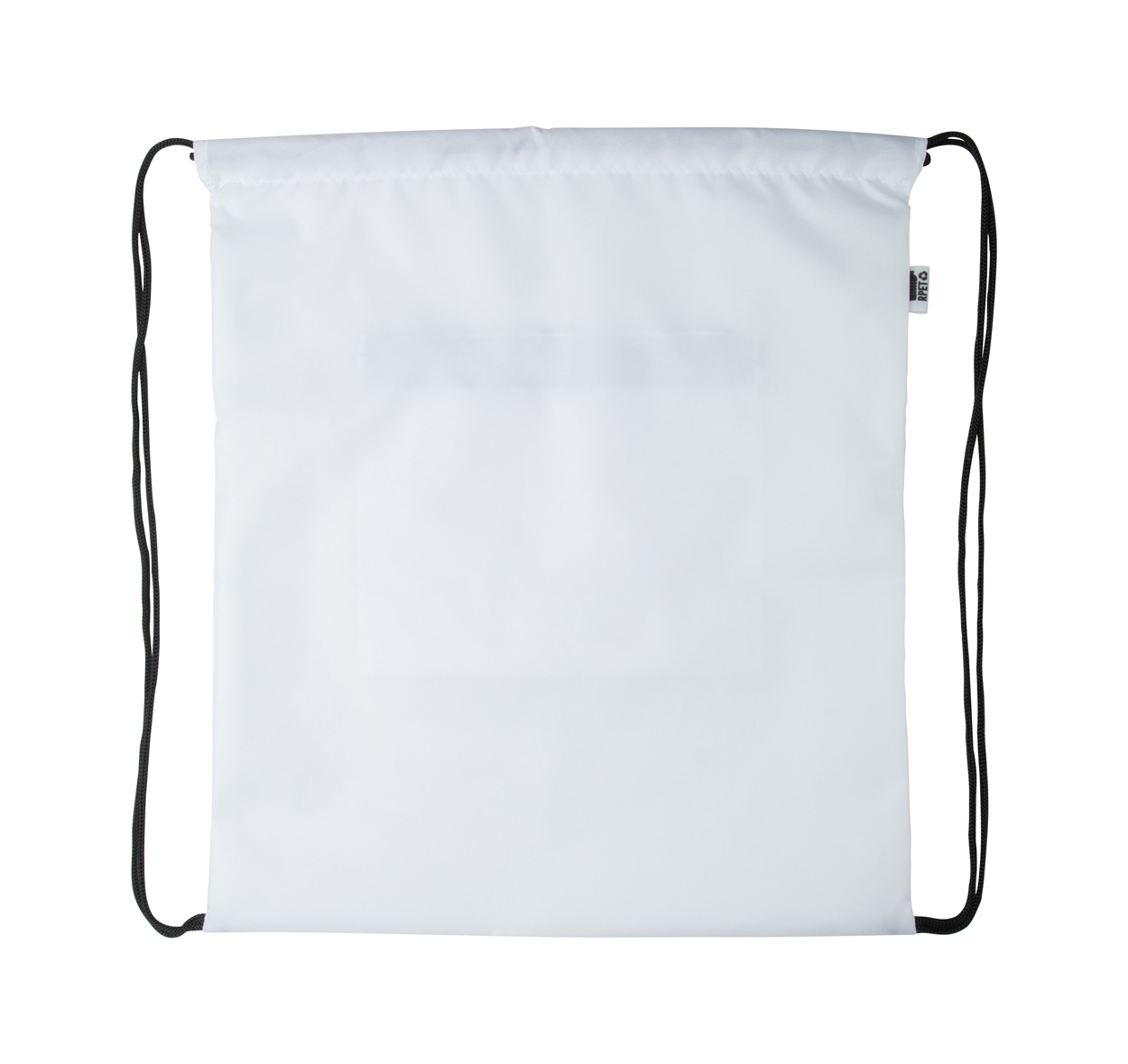 Individueller Turnbeutel mit Kordelzug und Fach mit RFID-Schutz mit Reißverschluss, Material: 190T RPET-Polyester. Der Preis ist inkl. Sublimationsdruck und RPET-Label. Mindestmenge: 25 Stk.