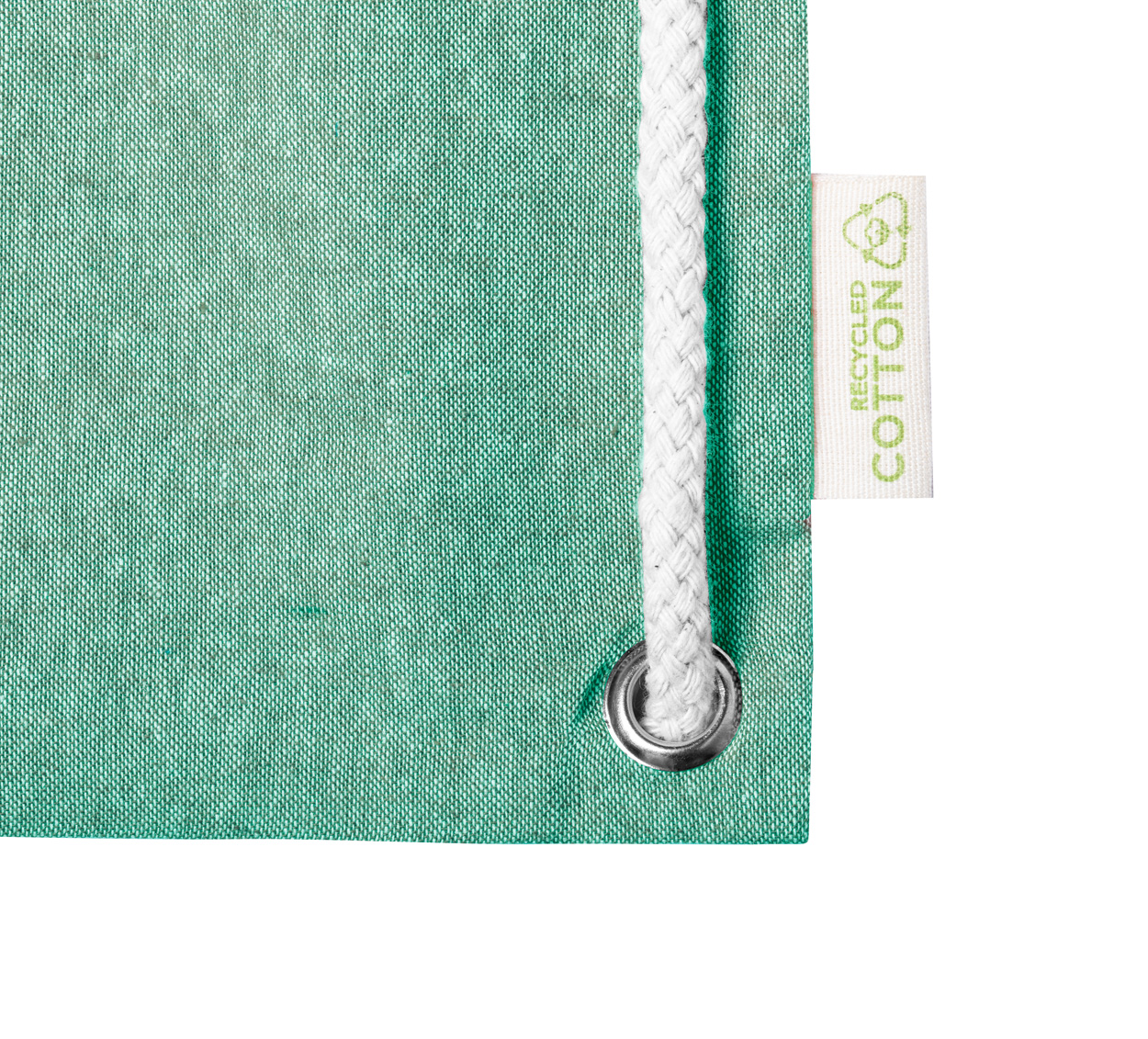 Turnbeutel aus recycelter Baumwolle mit dicken geflochtenen Kordeln und langen Griffen. Auch verwenbar als Einkaufstasche. Material: 100% recycelte Baumwolle (140 g / m²).