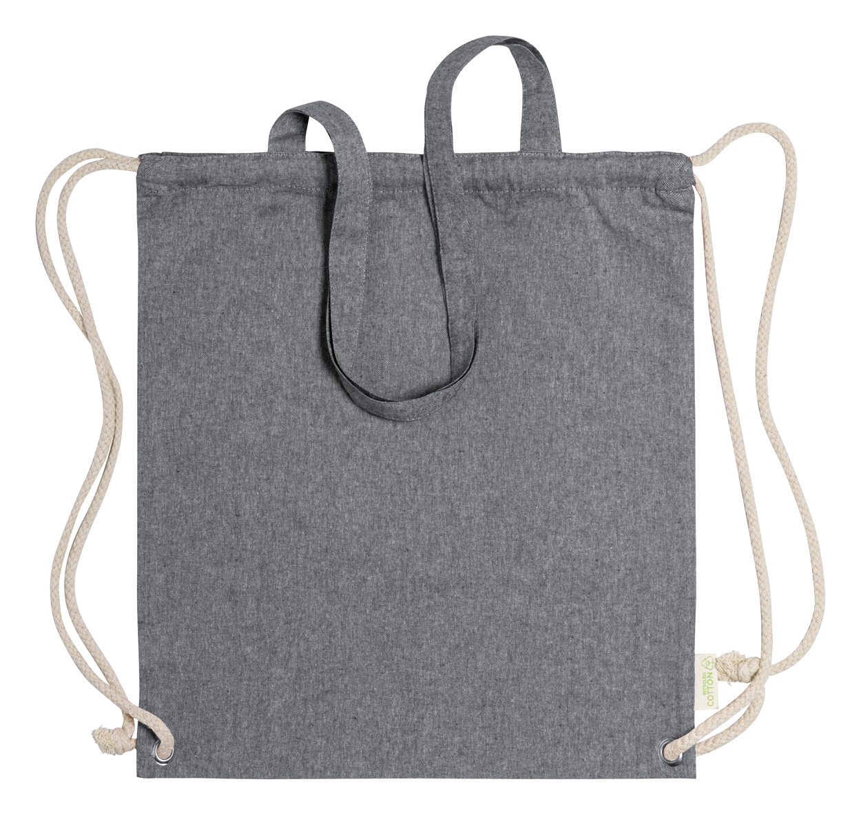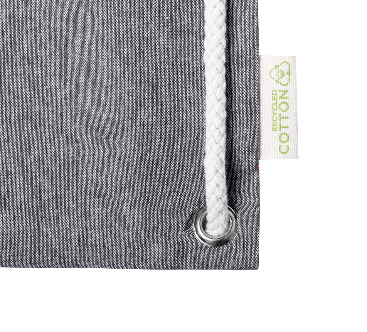 Turnbeutel aus recycelter Baumwolle mit dicken geflochtenen Kordeln und langen Griffen. Auch verwenbar als Einkaufstasche. Material: 100% recycelte Baumwolle (140 g / m²).
