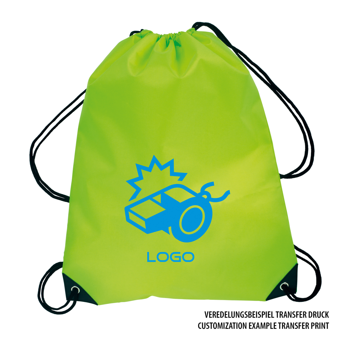 Als Turnbeutel, Mehrwegtasche bei der Shoppingtour oder als Messe-Giveaway einsetzbar: Der leichte Zugbeutel mit Schulterbändern ist ein echter Allrounder.