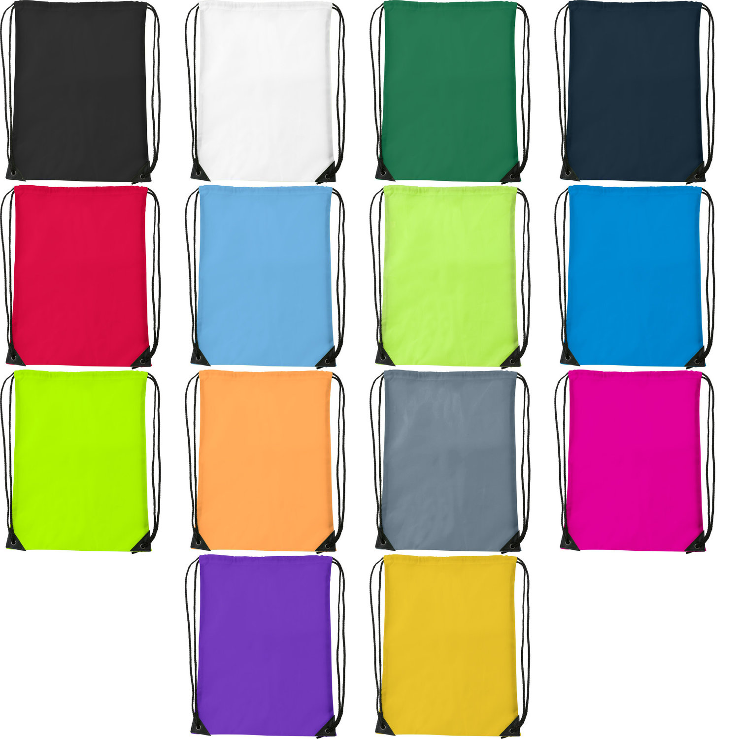 Turnbeutel aus Polyester (210D), mit Kordeln als Schultergurte und Metallösen.
