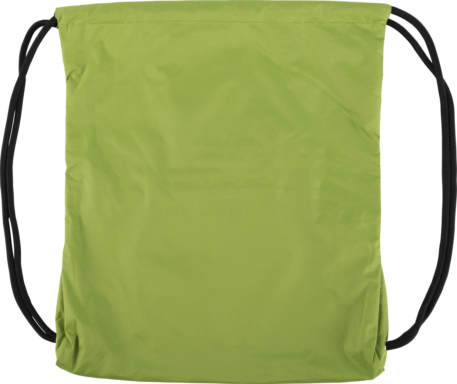 Turnbeutel mit Kordelzug aus Pongee. Die vordere Tasche hat einen Reißverschluss.