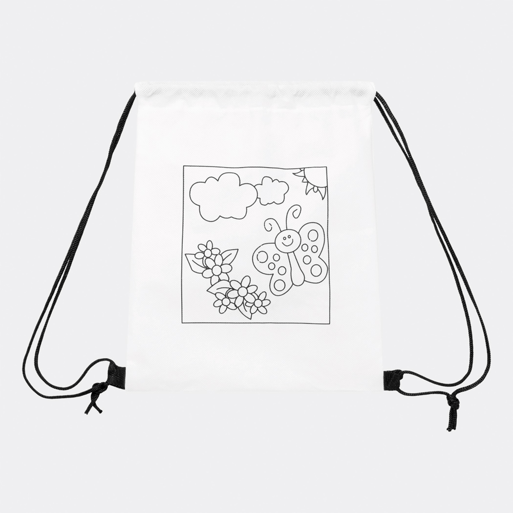 Turnbeutel zum Bemalen COLOURFUL HOBBY: Beutel mit Kordelzugverschluss, aufgedrucktes Motiv, 4 Filzstifte zum Ausmalen