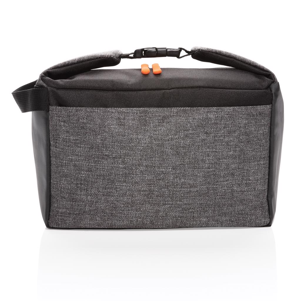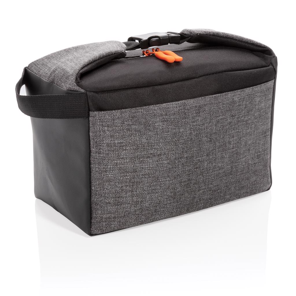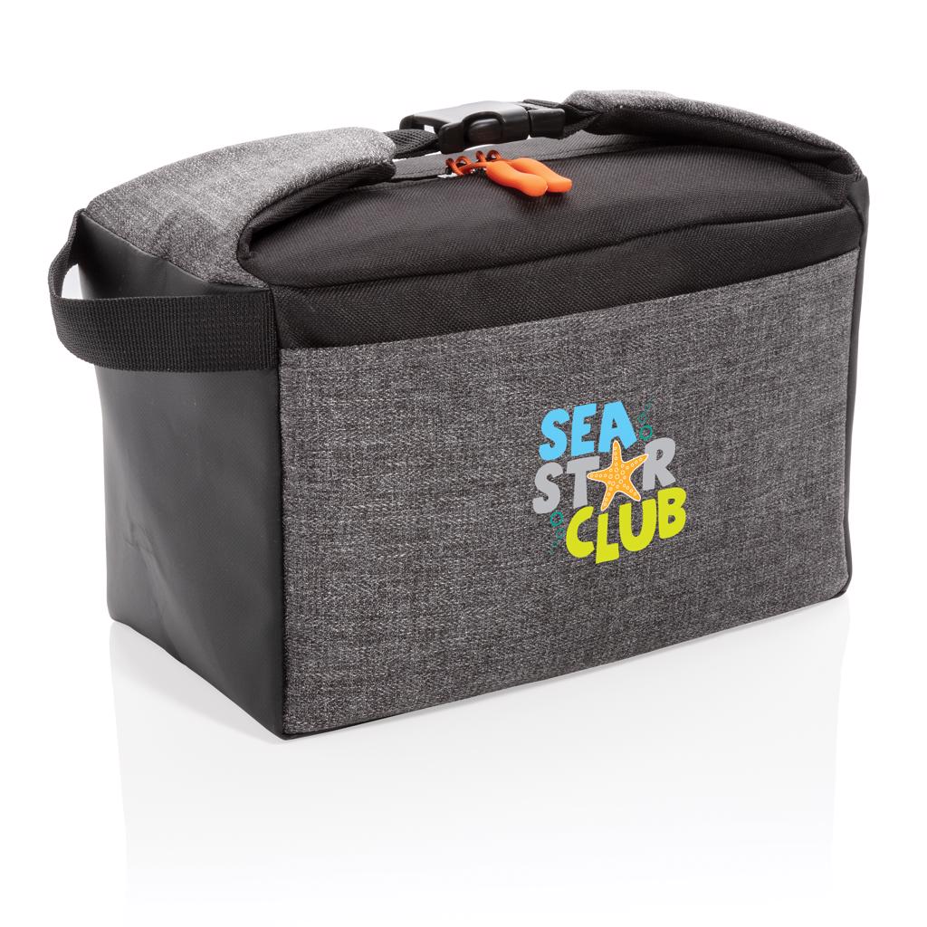 Platz für bis zu 8 Dosen bietet diese Kühltasche mit zusätzlichem Schnappverschluss. Mit Vortasche.