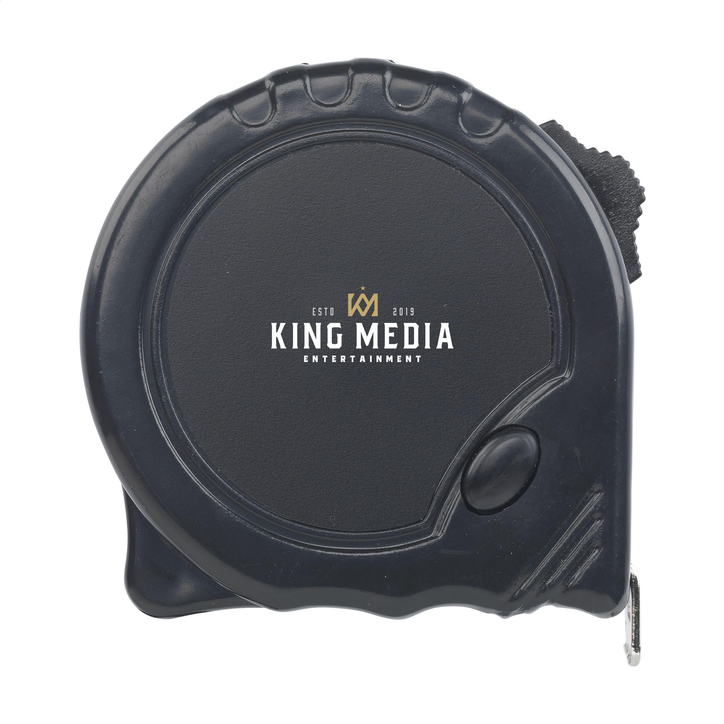 Bandmaß mit einem Gehäuse aus recyceltem ABS-Kunststoff und einem 3 Meter langen und 1,6 cm breiten gehärteten Stahlband. Mit Angabe in Zentimetern, Gürtelclip und Polyester-Handschlaufe. Geeicht nach europäischen Normen. RCS-zertifiziert. Recyceltes Material insgesamt: 20%.