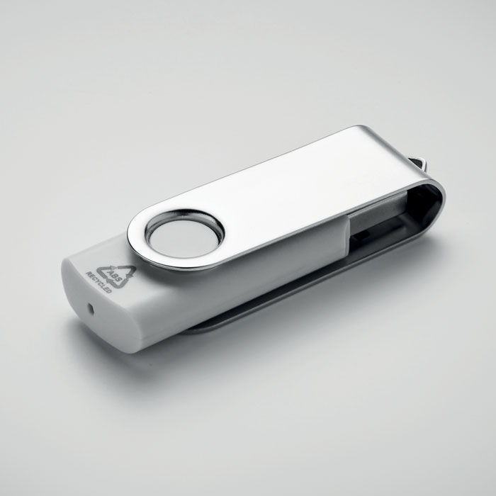 16GB USB-Stick im Gehäuse aus recyceltem ABS. Mit drehbarer Abdeckung aus Metall.