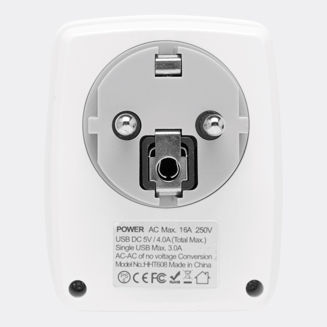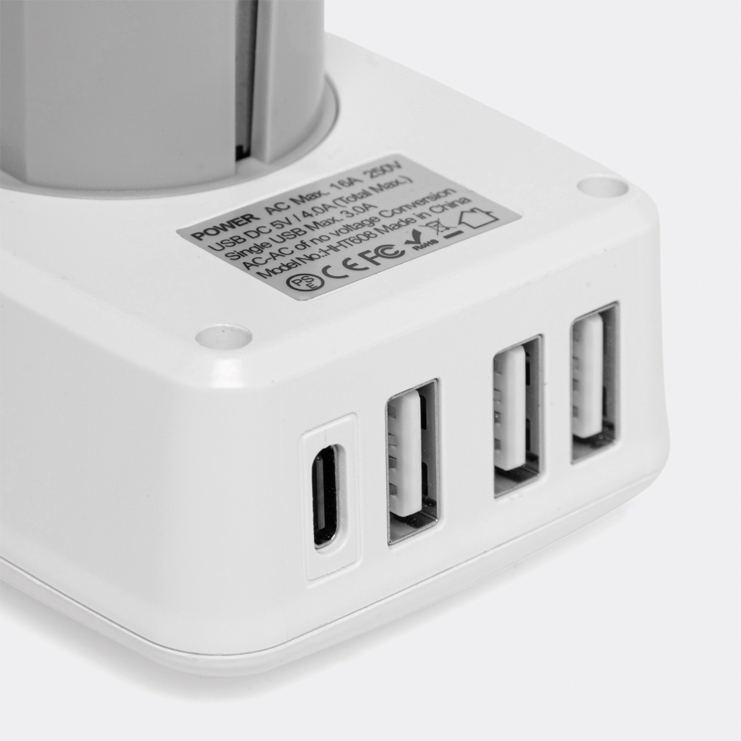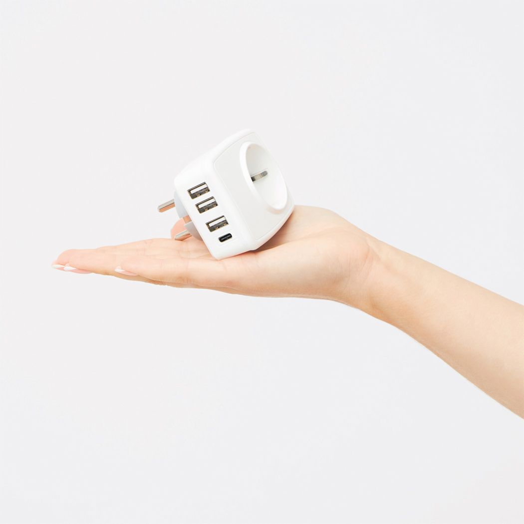 USB-Adapter-Stecker-Netzteil ENDLESS POWER PRO: 1 geerdete Schutzkontakt-Steckdose mit Kindersicherung, 3 Port USB Typ A, 1 Port USB Typ C, Gesamt-Ausgangsleistung USB: 3A (max.), Ausgangsleistung Schutzkontakt-Stecker: 4.000W (max.), blaue Status LED, nicht geeignet für UK, in Box