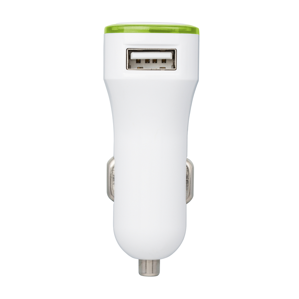 Der intelligente 2-in-1-Autoladeadapter ist für PKW und LKW anwendbar. Mit einer Ausgangsleistung bis zu DC 5V und 3.1A (bei Anschluss auf zwei Geräte verteilt sich die Leistung auf beide). Die intelligente Ladesteuerung weiß genau, wie viel Strom Ihr Gerät zum Laden benötigt. Das integrierte Schutzsystem bewahrt vor Überspannung, Überhitzung und Kurzschluss. Der umlaufende Farbring an der Werbefläche wird per LED hinterleuchtet.