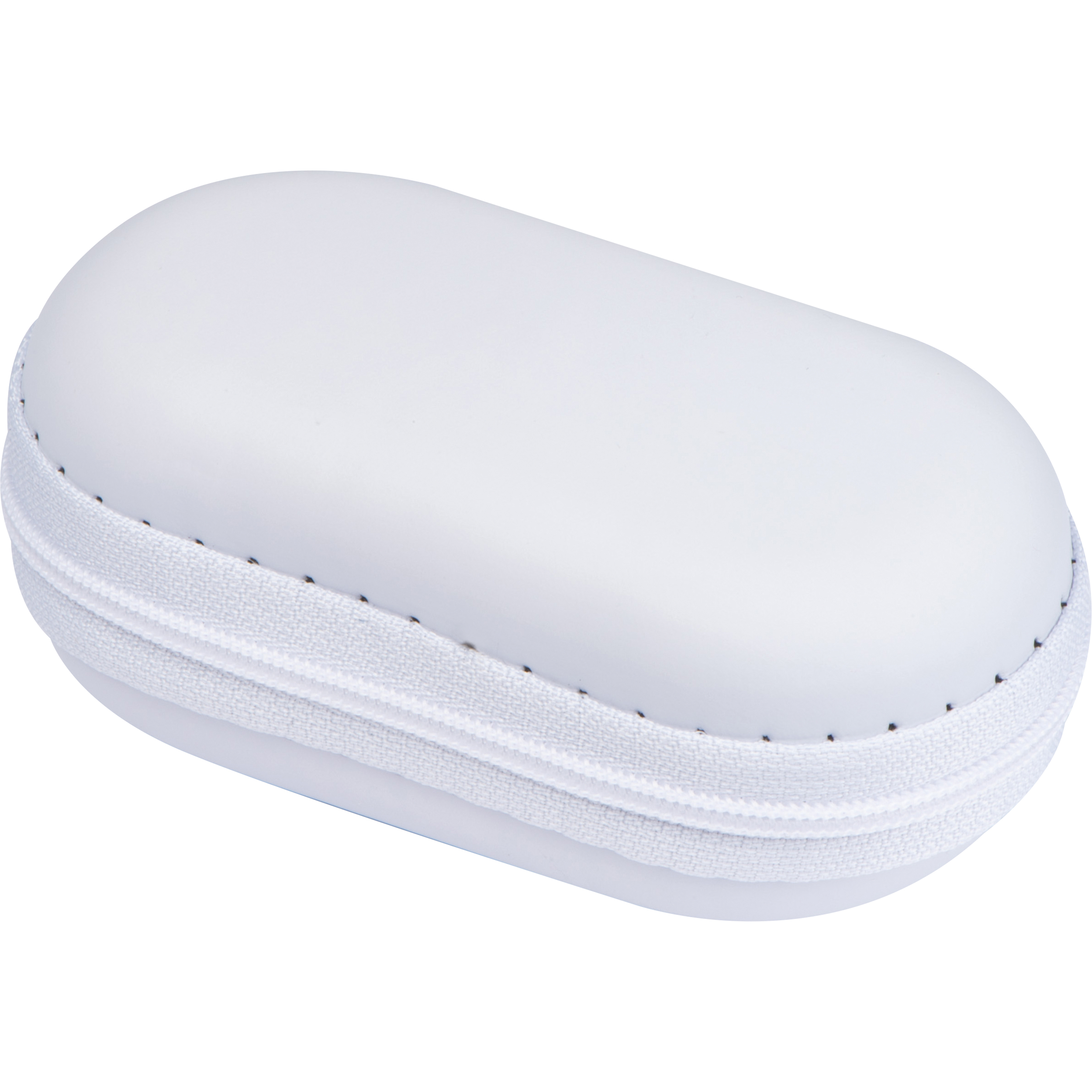 Travel Set bestehend aus einem USB- und einem C Type Anschluss, wahlweise auf dem Netzstecker oder dem 12 Volt Stecker. Verpackt in einem verschließbarem Etui. Die Werbung wird auf dem Etui angebracht.