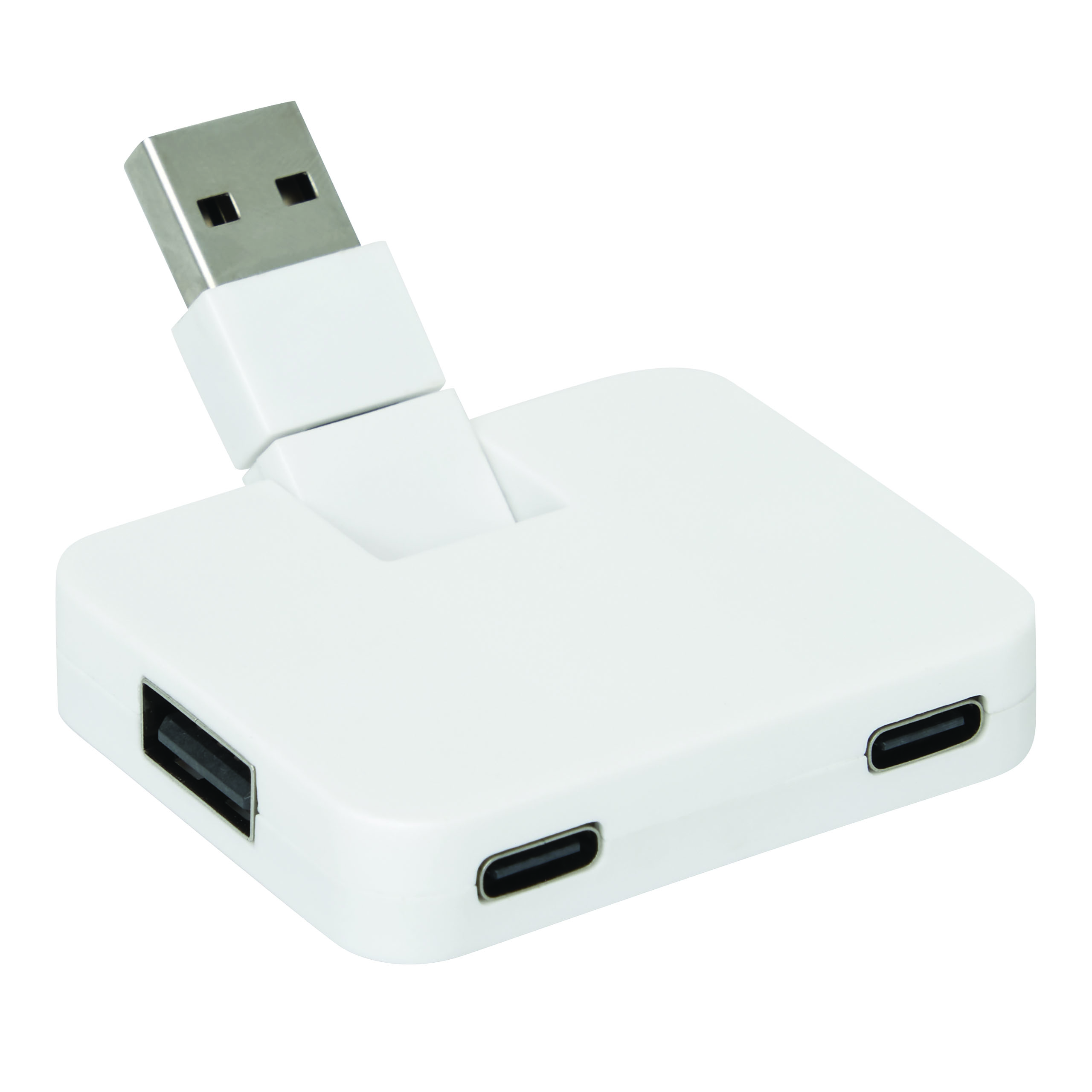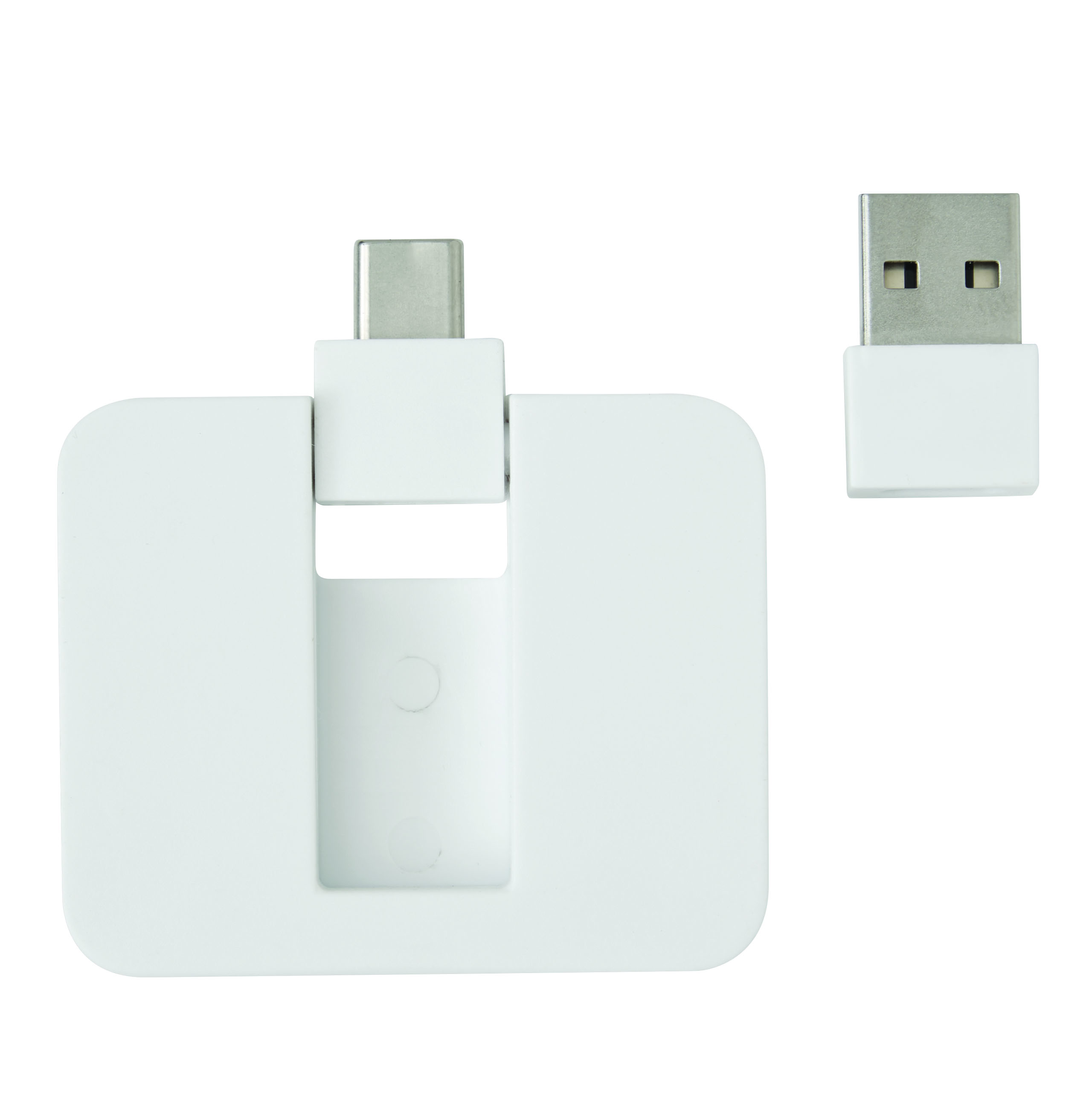 USB Hub HUBI: 2 Port USB 2.0 und 2 Port USB Typ C, kombinierter und ausklappbarer USB A / Typ C Eingangsstecker, Gehäuse aus Kunststoff