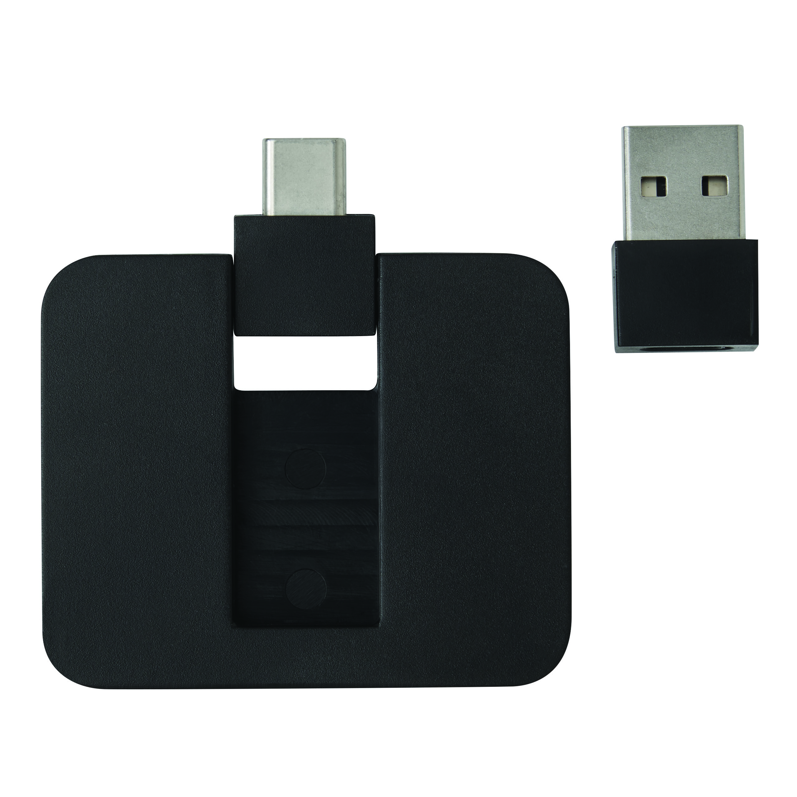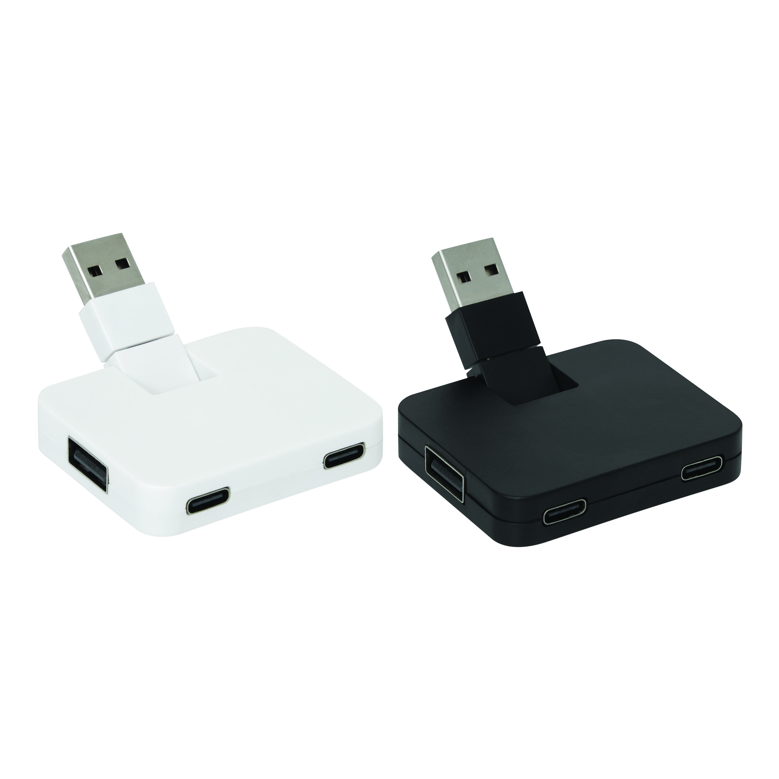 USB Hub HUBI: 2 Port USB 2.0 und 2 Port USB Typ C, kombinierter und ausklappbarer USB A / Typ C Eingangsstecker, Gehäuse aus Kunststoff