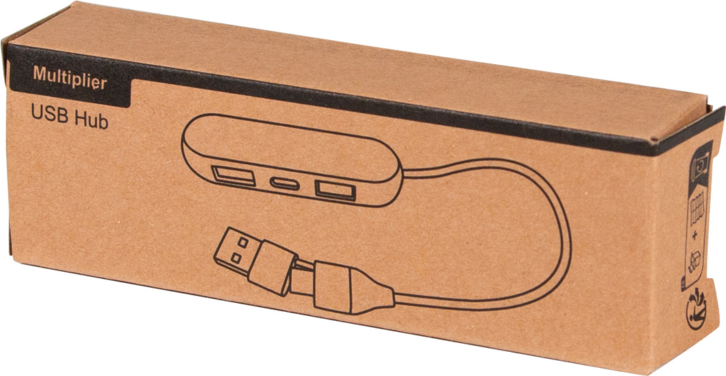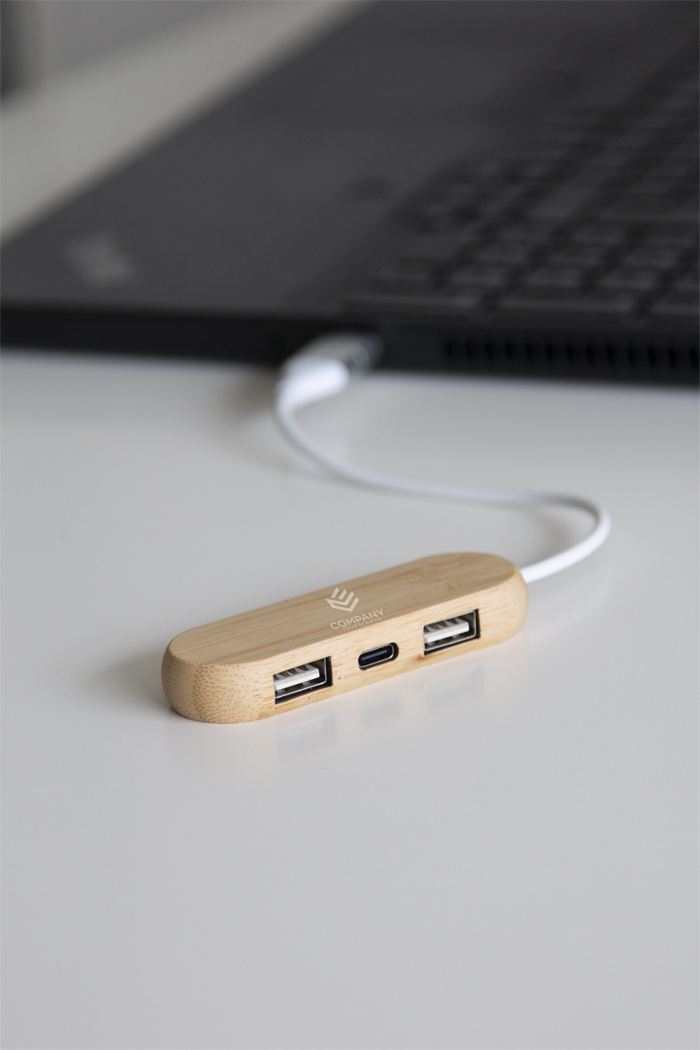 USB Hub MULTIPLIER: im Bambus-Gehäuse, 2 Port USB 2.0 und 1 Port USB Typ C, Kabellänge ca. 21,5 cm, kombinierter USB A / Typ C Eingangsstecker, in Box
