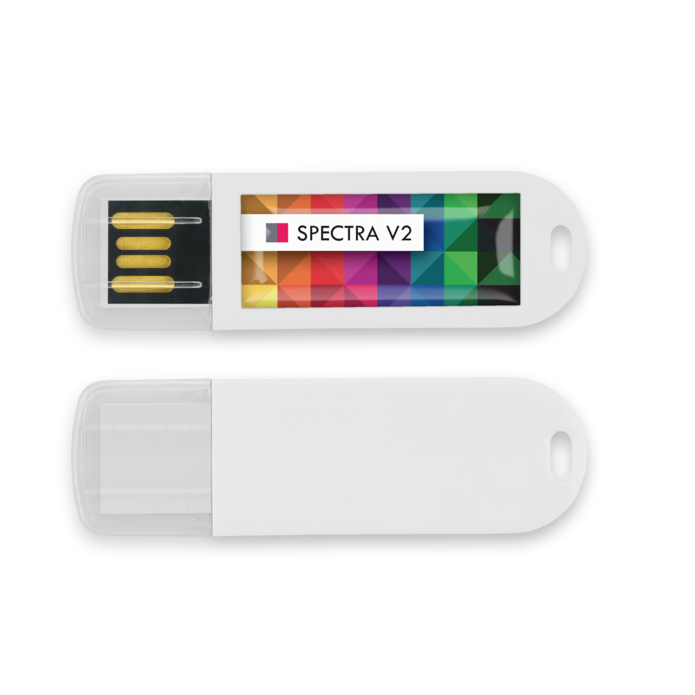 USB Spectra V2: farbenfroh und günstig. Dieser auffällige USB Stick kann mit einem Vollfarbdruck mit Doming auf einer Seite personalisiert werden. Individuelle Personalisierung ist ebenfalls möglich. Wählen Sie einen Premium-USB-Chip für höhere Geschwindigkeit und lebenslange Garantie oder den günstigeren Basic-USB-Chip.