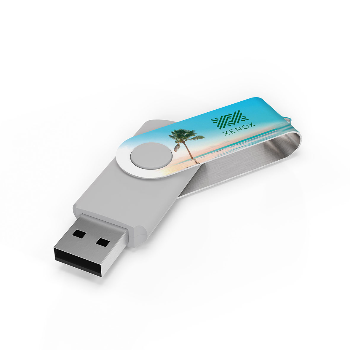Unumstritten gehört der USB-Stick Twister zu den weltweit meistverkauftesten USB-Modellen. Sein Metallbügel lässt sich um 360 Grad drehen und ist beidseitig bedruckbar. Durch den integrierten Schlüsselanhänger ist eine leichte Befestigung am Schlüsselbund möglich und trägt als ständiger Begleiter Ihre Nachricht hinaus. Wählen Sie einen Premium-USB-Chip für höhere Geschwindigkeit und lebenslange Garantie oder den günstigeren Basic-USB-Chip.