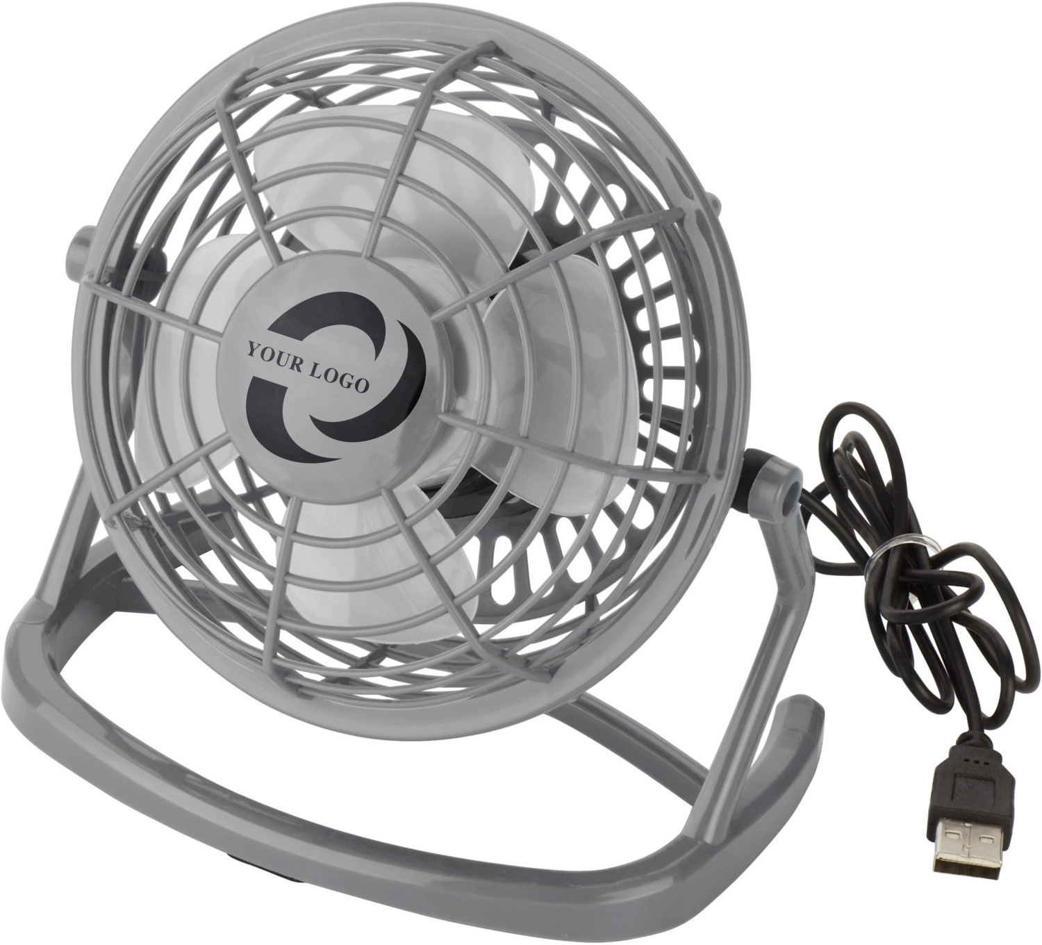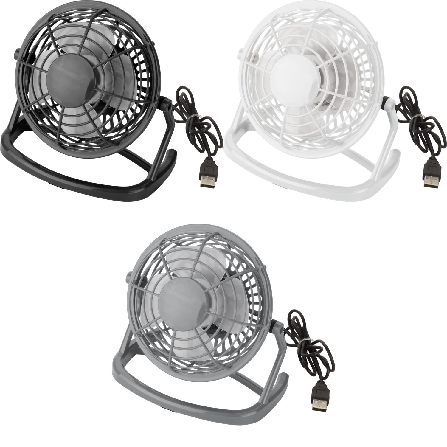 USB-Ventilator aus Kunststoff, inklusive Tischständer und Anschlusskabel (USB 2.0, ca. 93 cm lang).