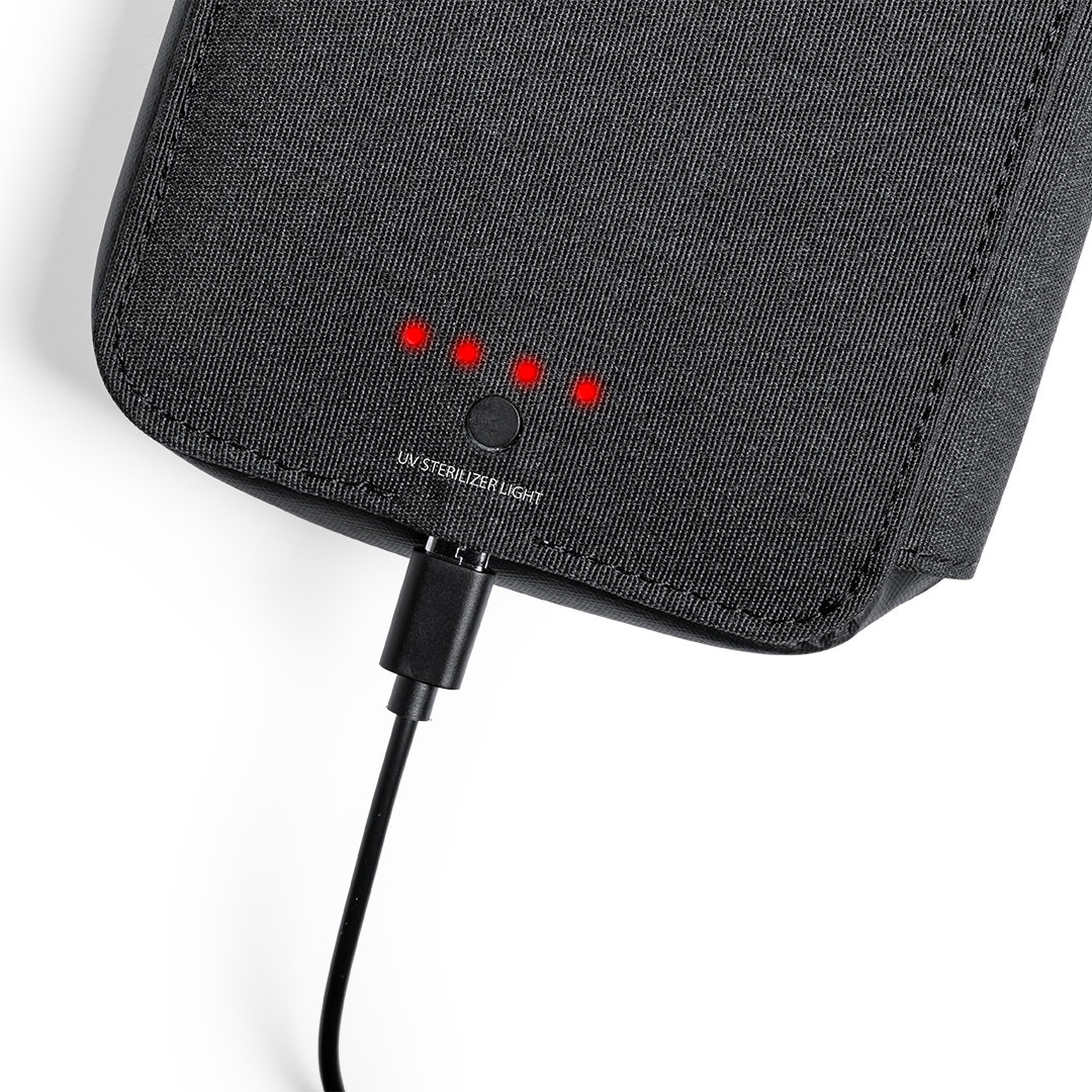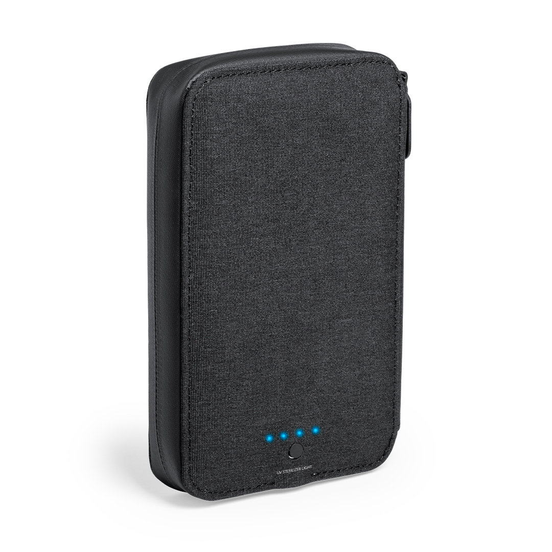 UV-Licht Typ C Organizer und Sterilisationskoffer, mit RFID-Schutz (Radio Frequency Identification), der Ihre Identitätsübertragungsgeräte sicher hält. Speziell für die Beseitigung von Mikroorganismen und Bakterien auf Smartphones und anderen Alltagsgegenständen entwickelt. Hergestellt aus widerstandsfähigem Polyester-Denim-Finish 600D, mit magnetischem Sicherheitsschloss an der Abziehvorrichtung für eine sichere Verwendung des Geräts. Enthält 4 innere Kartenhalter + Außentasche. Präsentiert in einer attraktiven individuellen Design-Box. LED-Birnenleistung 1,2W und Wellenlänge 275nm. Sterilisationszeit mit Auto-Off-Funktion von 1 und 3 Minuten. Benutzerhandbuch in Spanisch und Englisch erhältlich. CE-, RoHS- und keimtötende Wirksamkeitszertifizierung verfügbar. Für den ordnungsgemäßen Gebrauch des Produkts den Kontakt mit Haut und Augen vermeiden.