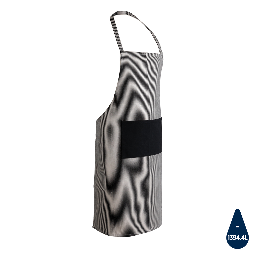 Die Ukiyo Aware™ 280gr rCotton-Deluxe-Schürze im One-Size Design erfüllt alle Anforderungen einer modernen Alltagsküche, ohne auf Schönheit oder Spaß zu verzichten. Die verstellbaren Träger sorgen für die richtige Passform. Die Fronttasche hält Ihre notwendigen Gegenstände. Die Schürze besteht aus recycelter Baumwolle mit AWARE™ Tracer, der die Verwendung tatsächlich recycelter Materialien bestätigt. Zudem werden 2% des Erlöses jedes verkauften Impact-Produkts mit AWARE™ Tracer an Water. org gespendet. Wir weisen darauf hin, dass die dunklen Streifen der Schürze durch das Druckbild Ihre Logos hindurch schimmern.