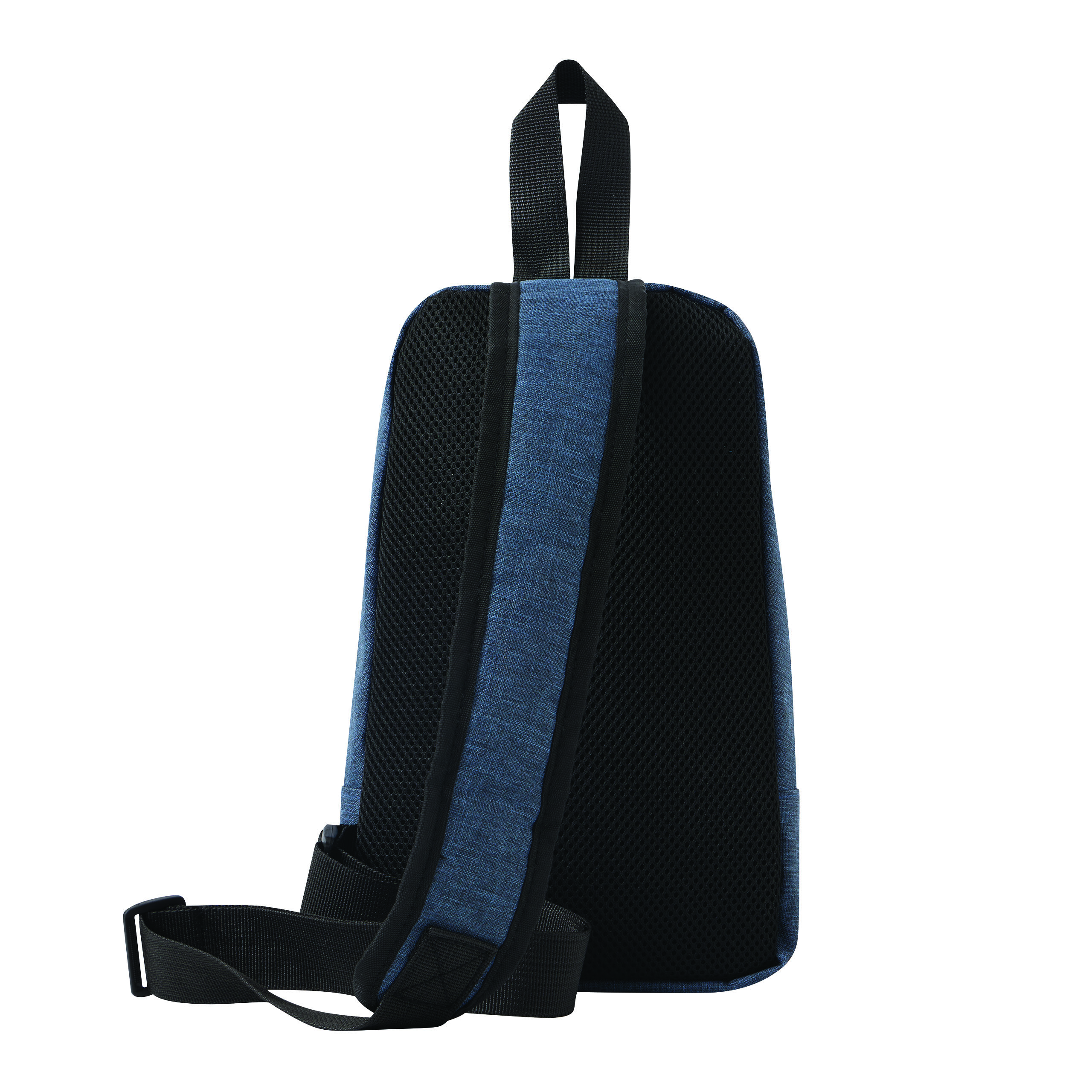 Umhängetasche EDERN: aus recyceltem Polyester (RPET), Reißverschluss-Hauptfach mit Einsteckfach, Reißverschluss-Vorfach, Trageschlaufe, gepolsterter und verstellbarer Schultergurt, gepolsterter Rückenbereich