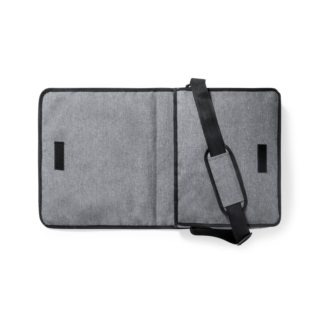 Umhängetasche aus strapazierfähigem 600D RPET Polyester. Vollständig gepolstert, mit breiter Frontklappe, Klettverschluss und schwarzer Zierleiste. Hauptfach mit Innenfutter, verstellbarem Schultergurt und Schulterpolsterung. Mit RPET-Zeichen auf dem Außenetikett. Das RPET-Material wird aus recyceltem Kunststoff hergestellt, wodurch die Wiederverwendung von Kunststoffabfällen gefördert und ein Beitrag zur Nachhaltigkeit auf unserem Planeten geleistet wird.
