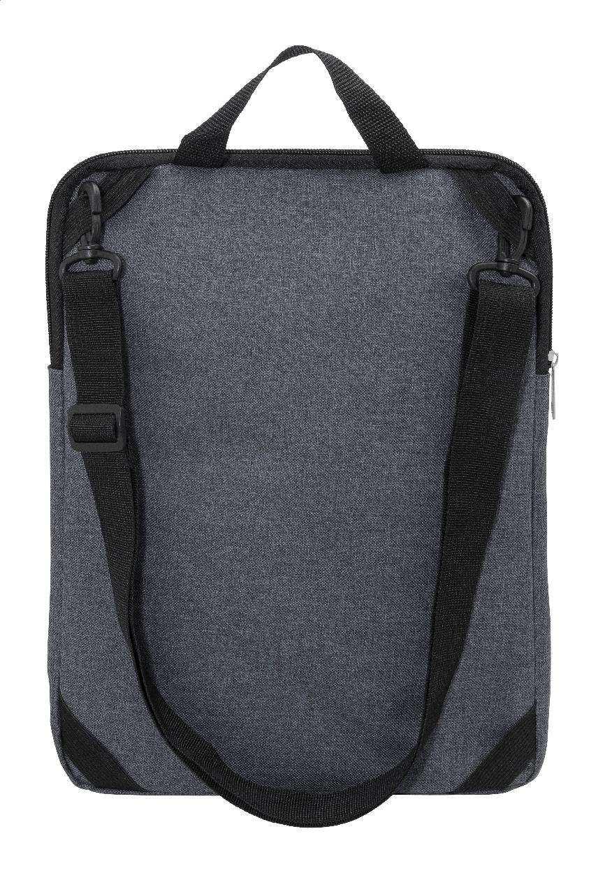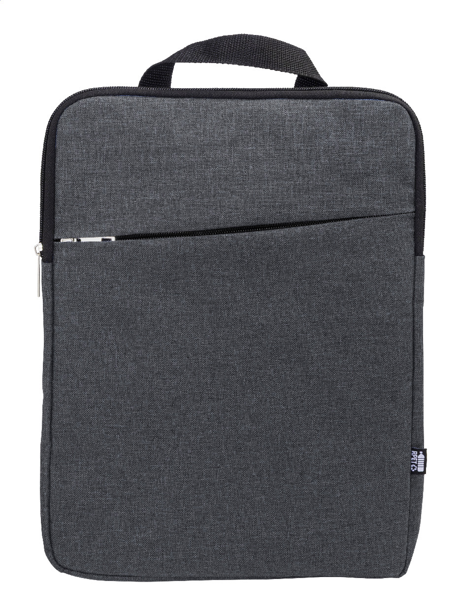 600D RPET-Polyester-gepolsterte Dokumenten- oder Laptop-Umhängetasche mit Reißverschlussfach und Reißverschlusstasche vorne. Für Laptops bis zu 15 Zoll geeignet. Mit verstellbarem Schultergurt, der vertikal und horizontal positioniert werden kann. Mit RPET-Label.