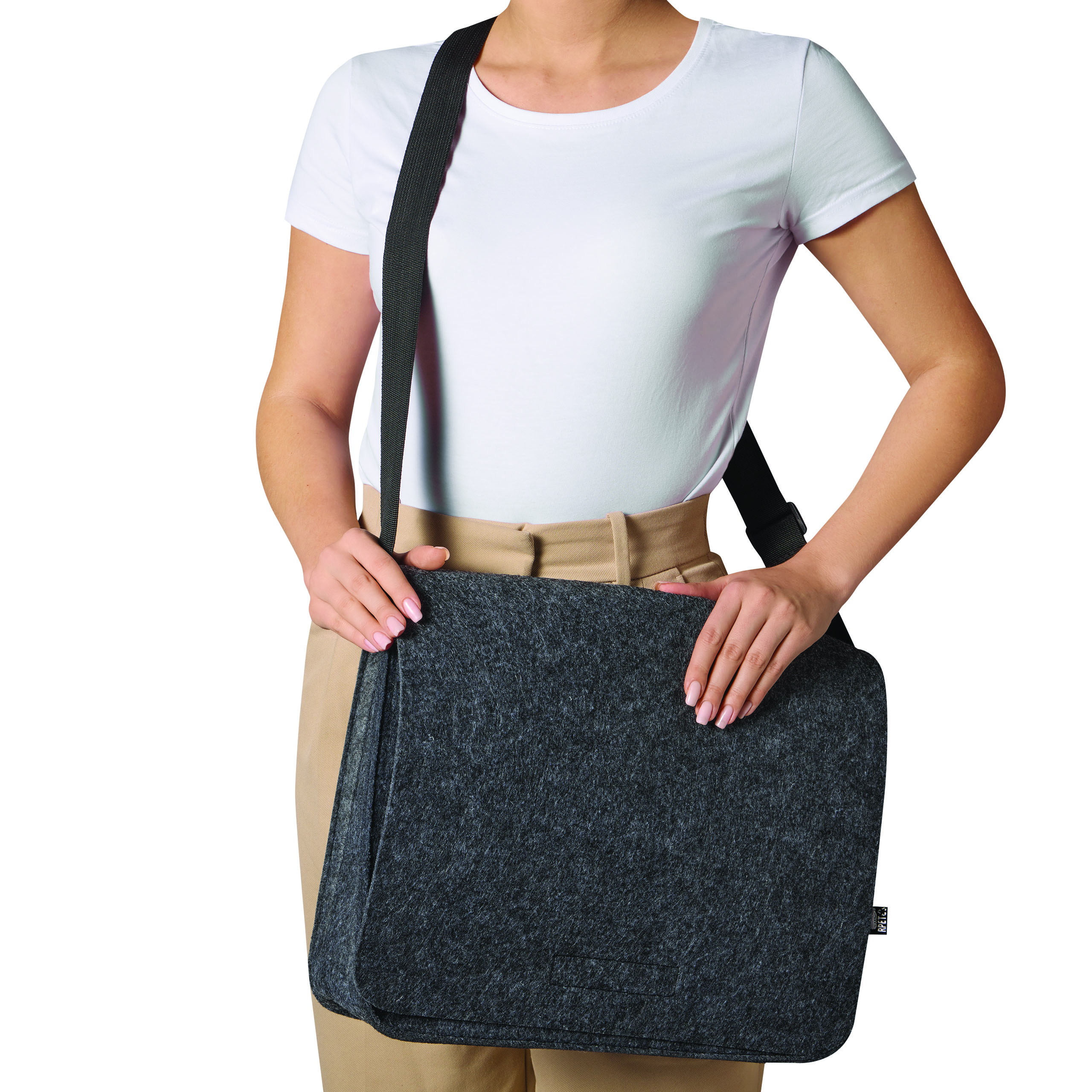 Umschlagtasche LUTON: aus recyceltem Kunststoff (RPET), Umschlag mit Klettverschluss, großes zweigeteiltes Hauptfach, verstellbarer Schultergurt