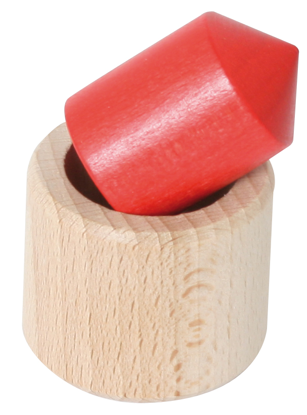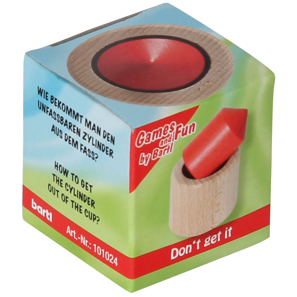 Kniffliges Geduldspiel aus Holz. Wie bekommt man den unfassbaren Zylinder aus dem Fass?