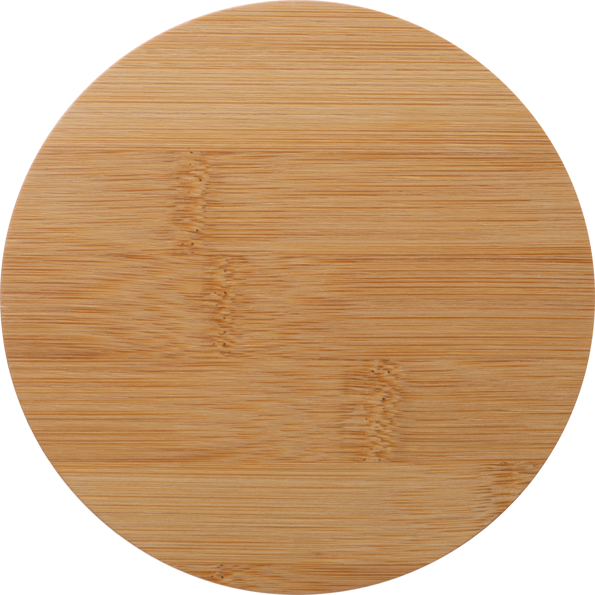 Universalschale aus Borosilikatglas mit sicher schließendem Bambusdeckel und einem Füllvermögen von 300 ml. Ihre Werbung wird auf den Deckel graviert.