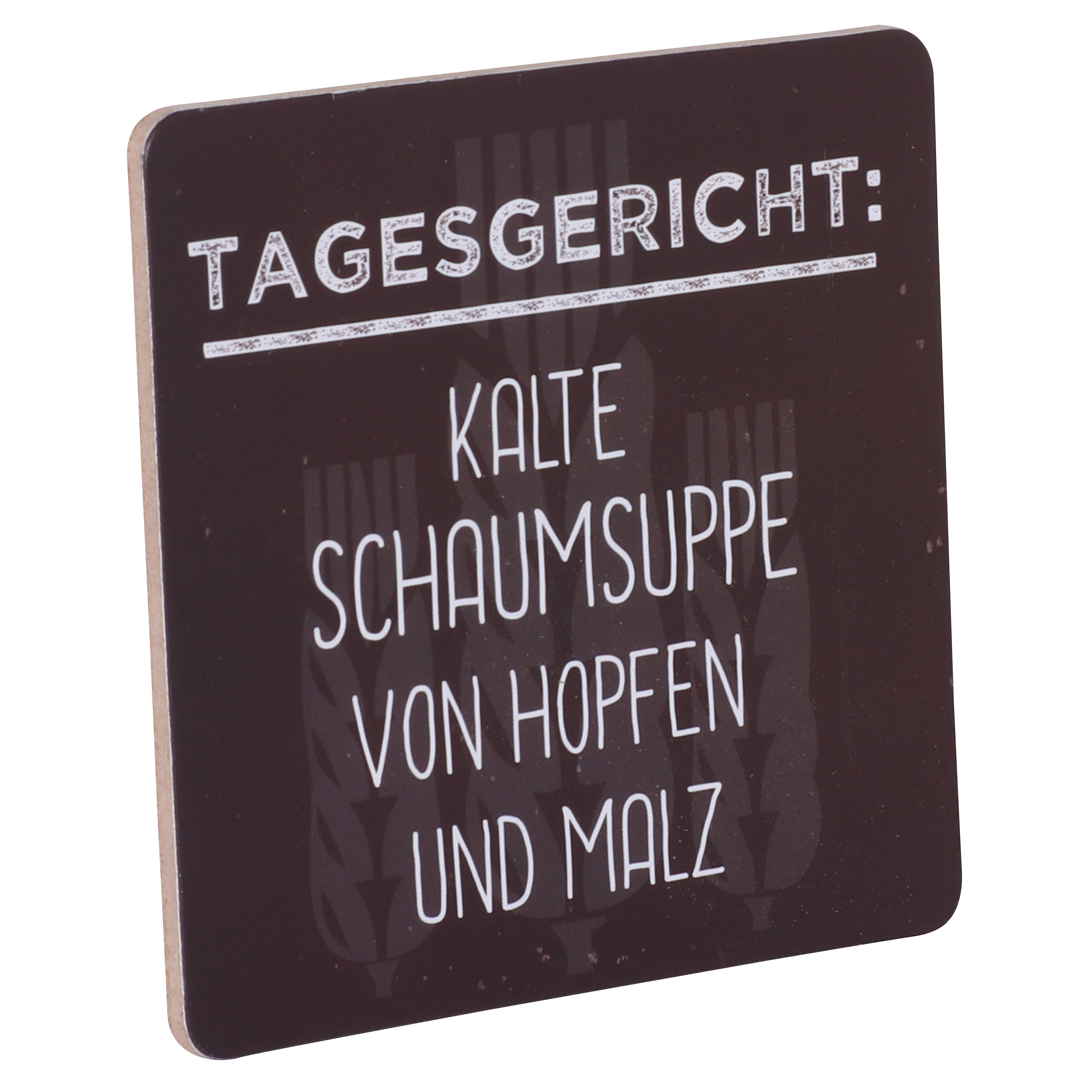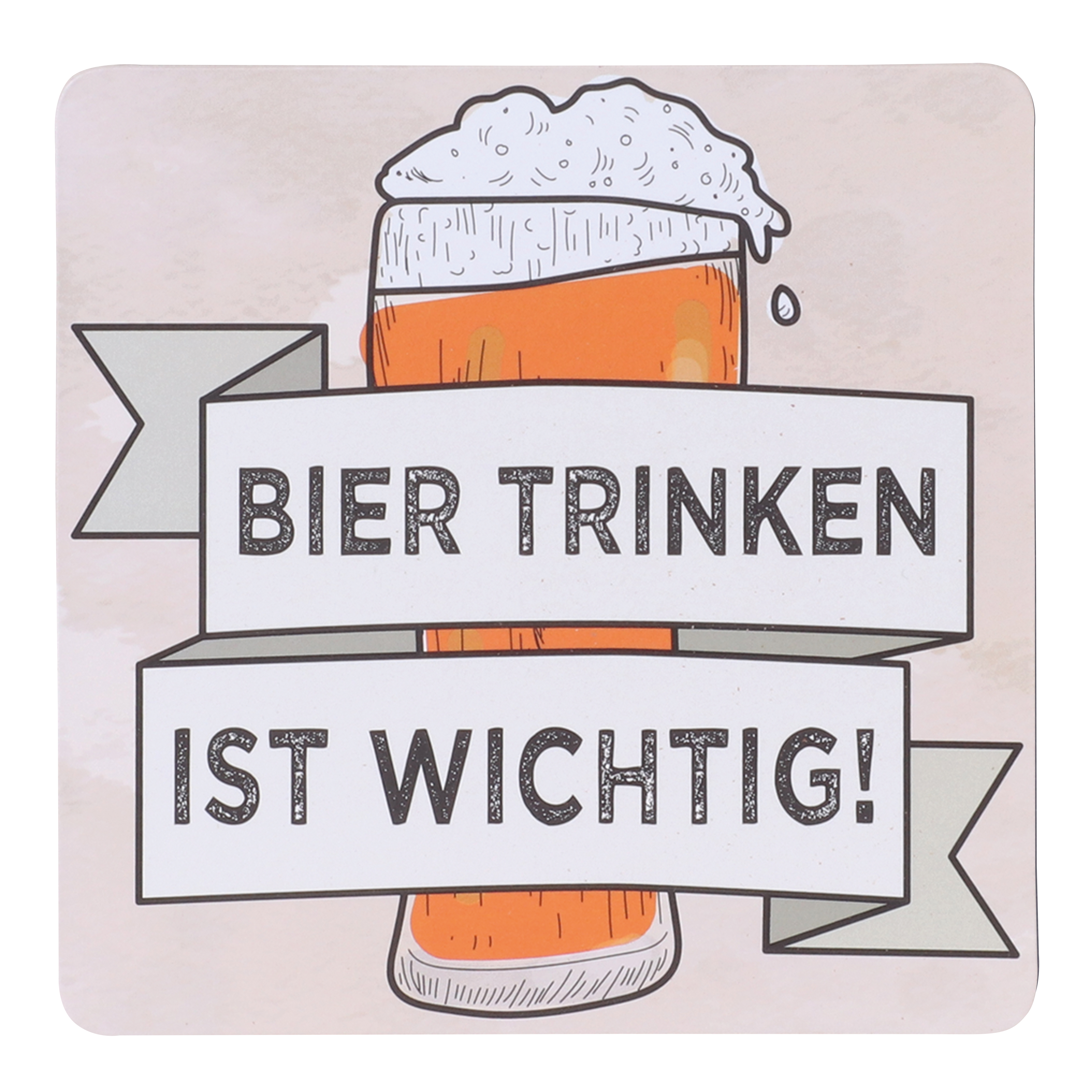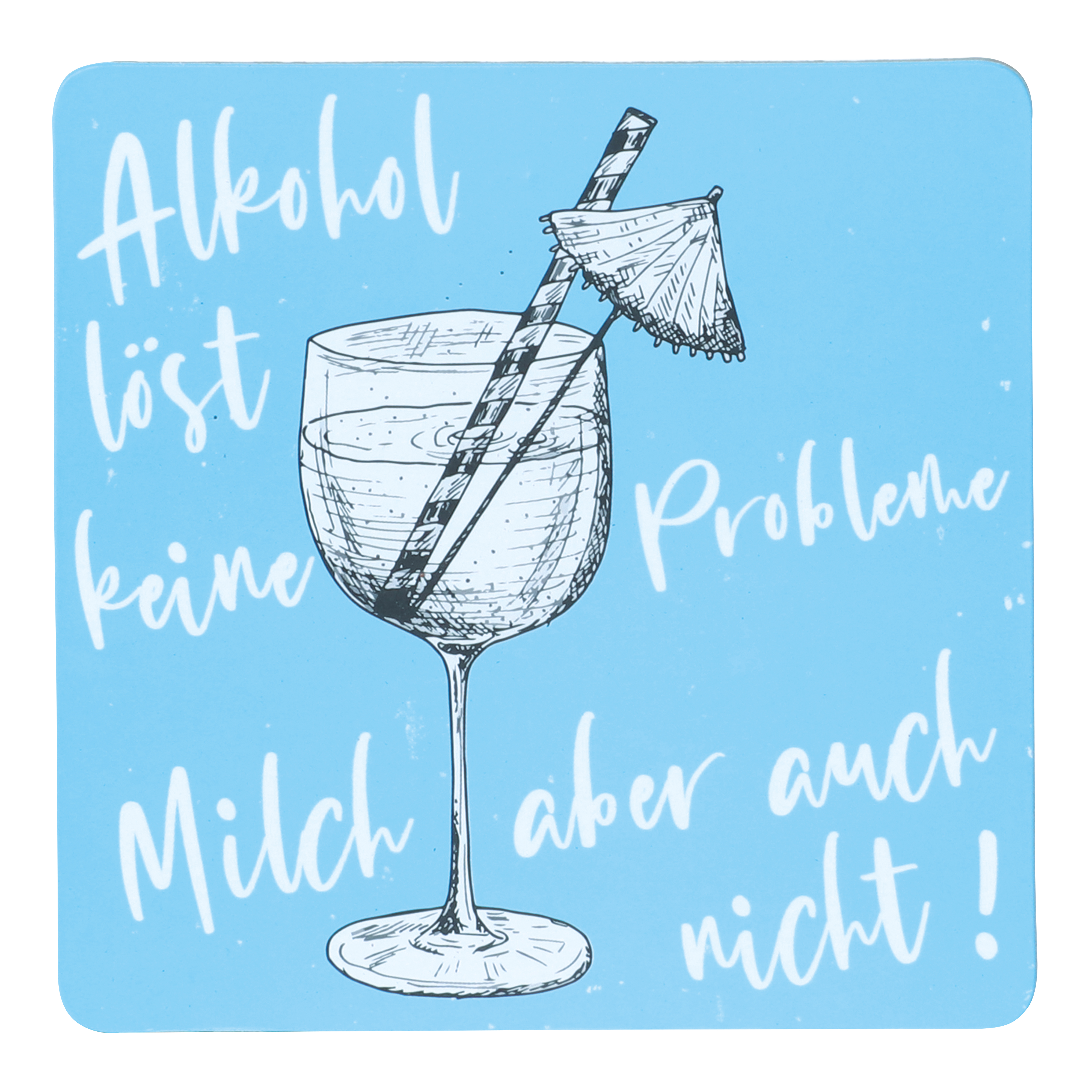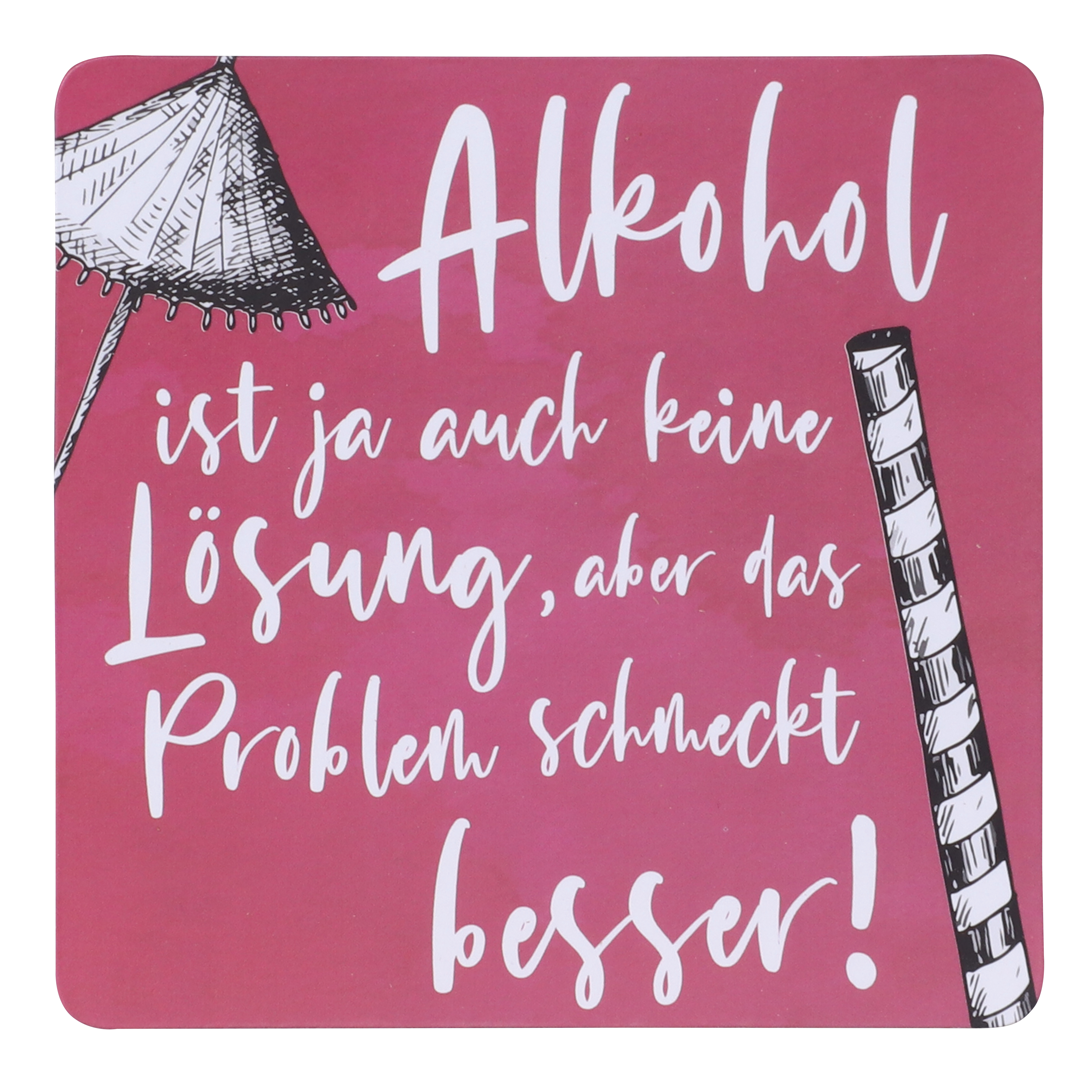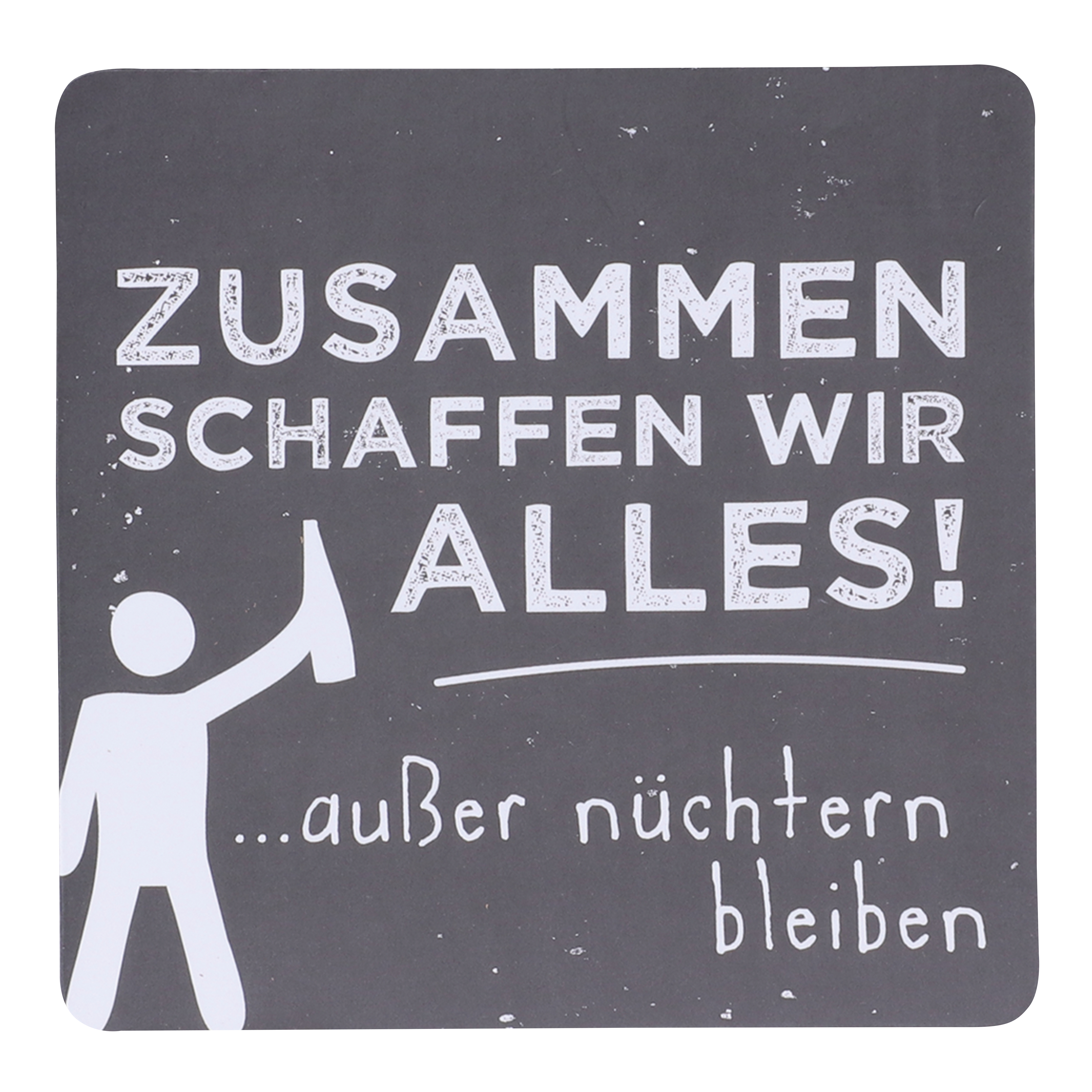 Mit den Untersetzern wird der Tisch vor feuchten Glas- oder Flaschenrändern geschützt. Durch die 12 verschiedenen Sprüche findet man sein eigenes Getränk auch leicht wieder!