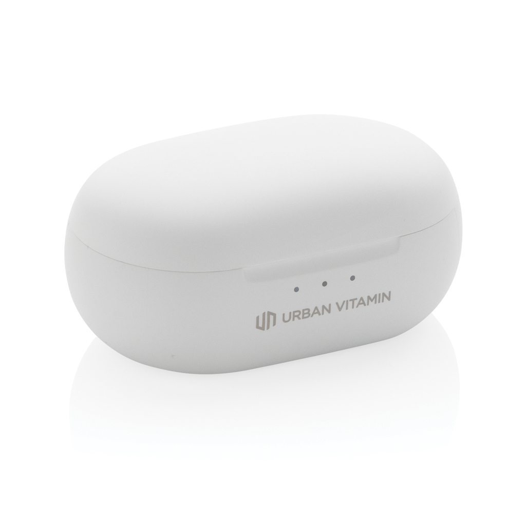 Der beste Klang beginnt mit der besten Stille. Die Ohrhörer sind mit Active Noice Cancelling (ANC) ausgestattet, um externe Geräusche zu blockieren, während Sie Ihre Lieblingsmusik, Ihren Podcast oder Ihr Lieblingsvideo hören. Dank Umgebungsgeräuschunterdrückung (ENC) sind auch Ihre Telefonate kristallklar, da Umgebungsgeräusche während Ihres Anrufs herausgefiltert werden. Dank der Touch-Control-Funktion müssen Sie nur auf den Ohrhörer tippen, um Anrufe anzunehmen. Das IPX 5-Rating macht die Ohrhörer wetter-, schweiß- und spritzwassergeschützt. Die komfortablen All-Day-Ohrhörer haben bis zu 5 Stunden Hörzeit und das Ladeetui ermöglicht bis zu 20 Stunden Wiedergabe. Wenn Sie das Lade-Etui aufladen möchten, stecken Sie einfach das Type-C-Kabel ein oder legen Sie es auf ein kabelloses Ladegerät. Urban Vitamin Artikel werden ohne PVC hergestellt und in einer 100% plastikfreien Verpackung verpackt.