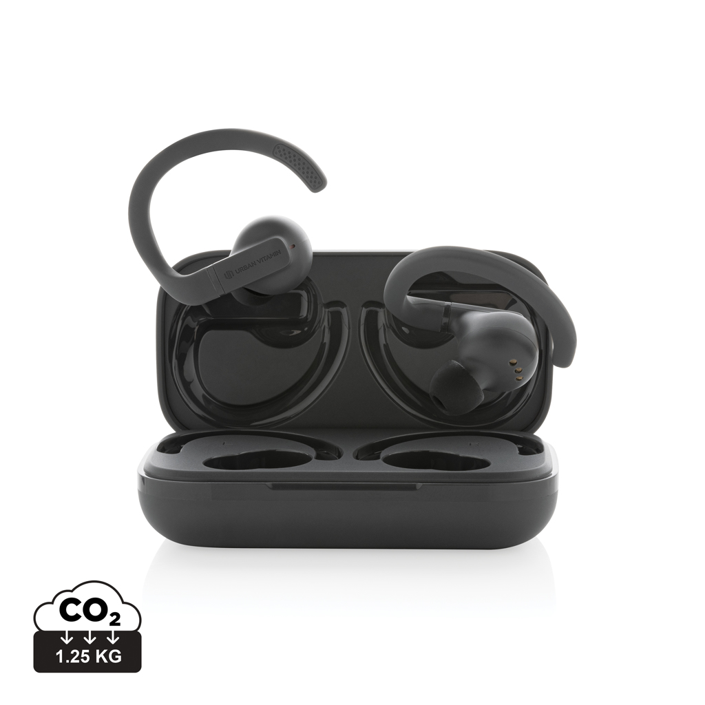 Übertreffen Sie sich selbst und bringen Sie Ihre Fitness mit diesen perfekt sitzenden Workout-Ohrhörern auf die nächste Stufe. Verstellbare, somit perfekt sitzende Ohrbügel sowie Ear-Tips in verschiedenen Größen halten diese Ohrhörer an Ort und Stelle, egal wie intensiv Ihr Training ist. Sie sind leicht und dank IPX5 Schweiß-, Staub- und Wasserbeständigkeit für Spitzenleistung ausgelegt. BT 5.3 sorgt mit den 50mAh Akkus der Ohrhörer für bis zu 8h Spielzeit sowie einen ausgewogenem Sound. Die Ohrhörer und das 600mAh-Ladeetui bestehen aus RCS (Recycled Claim Standard)-zertifiziert recyceltem ABS / TPE. Gesamter Recyclinganteil: 55% bezogen auf das Gesamtgewicht des Artikels. Die RCS-Zertifizierung gewährleistet eine vollständig zertifizierte Lieferkette der recycelten Materialien. Die Ohrhörer können in der Ladebox 3 Mal vollständig aufgeladen werden. Urban Vitamin Artikel werden ohne PVC hergestellt und sind in plastikreduzierten Verpackungen verpackt.