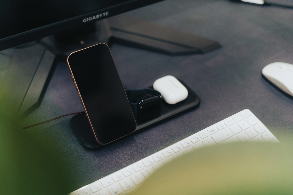 Möchten Sie alle Ihre Geräte gleichzeitig mit voller Geschwindigkeit aufladen? Torrance hat mit seinem ultraschnellen 15W-Magnetladegerät die Lösung für Sie. Das kabellose Ladegerät kann sowohl als Ständer als auch flach verwendet werden. Verwenden Sie es als Ständer, um magnetische Ladetelefone aufzuladen, oder verwenden Sie es flach für jedes andere kabellose Telefon. Verwenden Sie die mittlere 5W-Ladestation, um ein zweites Telefon oder Ohrhörer aufzuladen. Um das Ganze abzurunden, verwenden Sie das Uhrenladegerät, um die neuesten Generationen der iWatch aufzuladen. Torrance wird mit einem 120cm recycelten TPE-Kabel für eine einfache Aufstellung auf Ihrem Schreibtisch oder Nachttisch geliefert. Schließen Sie es einfach an eine Schnellladestation (mind. 9V/2A) an, um loszulegen. Torrance wird aus RCS recyceltem ABS hergestellt. Gesamter recycelter Inhalt: 37% basierend auf dem Gesamtgewicht des Artikels. PVC-frei hergestellt und in kunststoffreduzierter Verpackung.