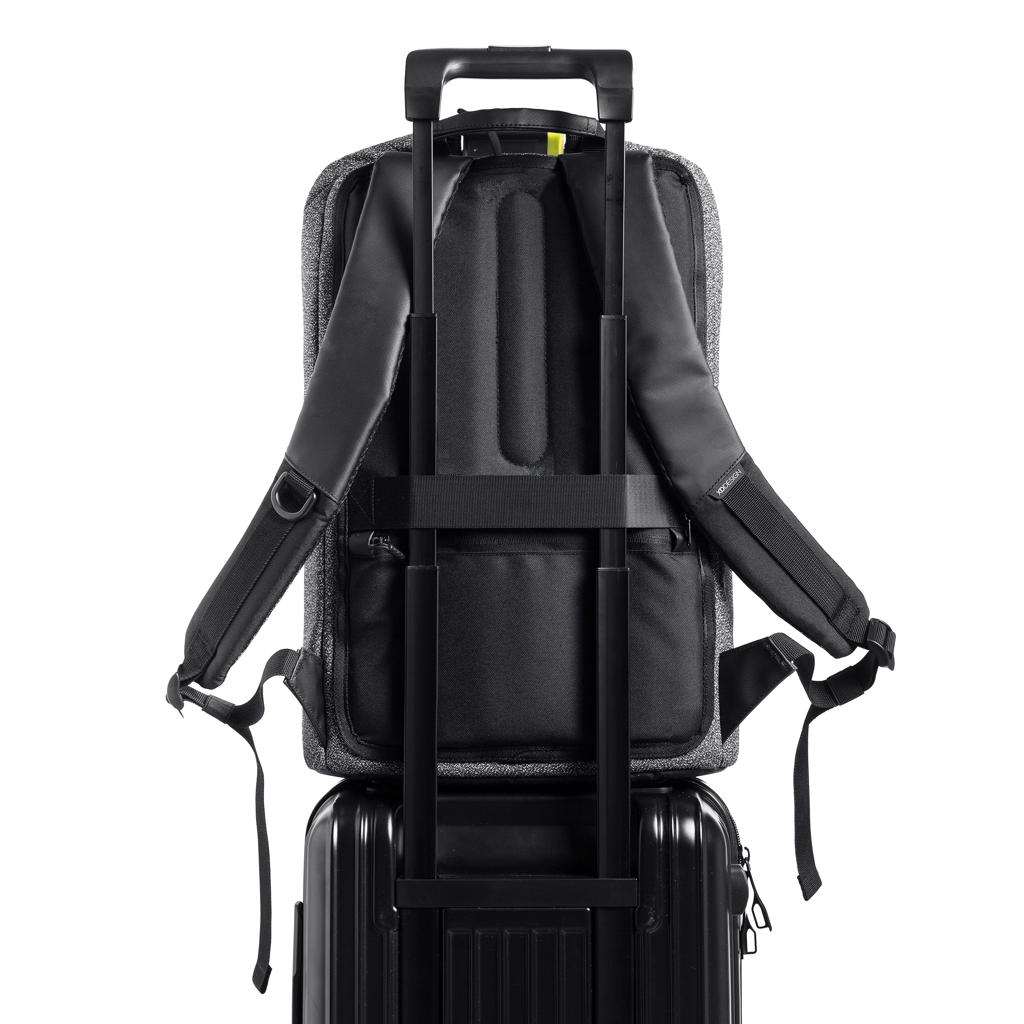 Der schnitthemmende Urban-Anti-Diebstahl Rucksack ist Ihr ultimativer Reisebegleiter. Das aus hochwertigem, nahezu schnittfestem Gewebe gefertigte Hauptfach bietet absolute Sicherheit durch ein stahlverstärktes Zahlenschloss, mit dem die Tasche auch an einem festen Gegenstand befestigt werden kann. Versteckte Taschen auf der Rückseite und im Schultergurt bieten RFID-geschützten Platz für Karten. Die Tasche verfügt über ein seitliches Wasserflaschenfach und ein abnehmbares elastisches Netz für Sportgeräte. Die gepolsterten Innenfächer bieten Platz für einen 15,6"-Laptop und ein Tablet bis zu 12,9", weitere Netztaschen sorgen für eine bessere Organisation Ihrer wichtigsten Utensilien. Registered Design®.