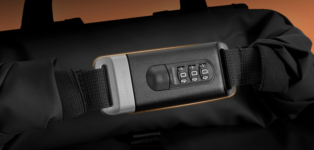 Der wasserabweisende Urban-Fahrradrucksack ist der ideale Reisebegleiter, der Sicherheit und Komfort bietet. Durch das Aufrollen des Hauptfachs und die Sicherung mit dem verstärkten Zahlenschloss bietet der Rucksack einen vollständigen Verschluss, der auch zum Abschließen der Tasche an einem festen Gegenstand verwendet werden kann. Der Rucksack lässt sich leicht am Fahrradrahmen befestigen. Im Inneren bieten gepolsterte Fächer Platz für einen 16" Laptop, während Netztaschen für Ordnung bei den wichtigsten Utensilien sorgen. Das minimalistische Äußere besteht aus hochwertigem, wasserabweisendem und strapazierfähigem PU-Material, während das Futter aus AWARE™ gefertigt ist, wodurch die Verwendung von tatsächlich recyceltem Stoff garantiert ist. 32% recycelter Inhalt. Registered design®