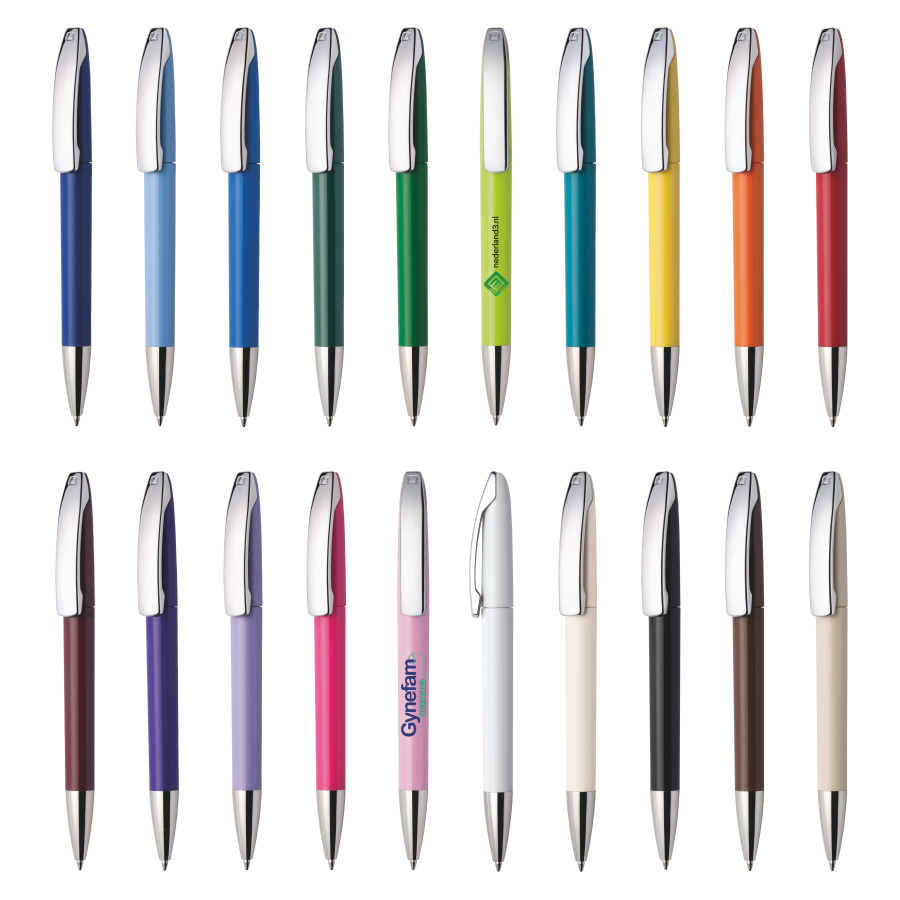 VIEW V1 C CR Kugelschreiber Maxema, Ästhetik und Kraft in VIEW vereint -Die solide hochglänzende Oberfläche des schlanken, fast zierlich anmutenden Gehäuses gewinnt noch an Ausstrahlung durch den auffallend kräftigen Clip, wie die Spitze gefertigt aus glänzendem, silberfarbenem Metall. Die Ober- und Unterseite des Gehäuses sind lieferbar in 20 verschiedenen Farben, die bereits ab 2.000 Stück miteinander kombinierbar snd. Er ist ausgestattet mit einer blauschreibenden Großraummine. Dieser Kugelschreiber kann ausschließlich auf dem Gehäuse bedruckt werden !