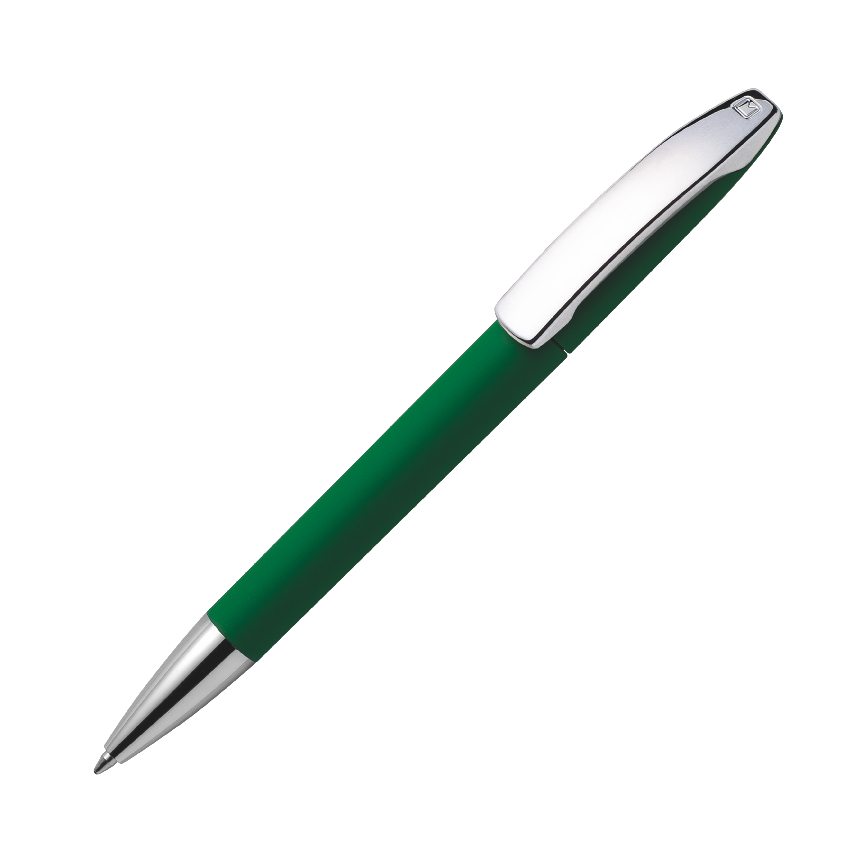 VIEW V1 GOM C CR Kugelschreiber Maxema, Ästhetik und Kraft in VIEW vereint -Die gummierte Oberfläche des schlanken, fast zierlich anmutenden Gehäuses gewinnt noch an Ausstrahlung durch den auffallend kräftigen Clip, wie die Spitze gefertigt aus glänzendem, silberfarbenem Metall. Die Ober- und Unterseite des Gehäuses sind lieferbar in 18 verschiedenen Farben, die bereits ab 2.000 Stück miteinander kombinierbar sind. Er ist ausgestattet mit einer blauschreibenden Großraummine. Dieser Kugelschreiber ist ausschließlich auf dem Clip zu bedrucken oder zu gravieren !