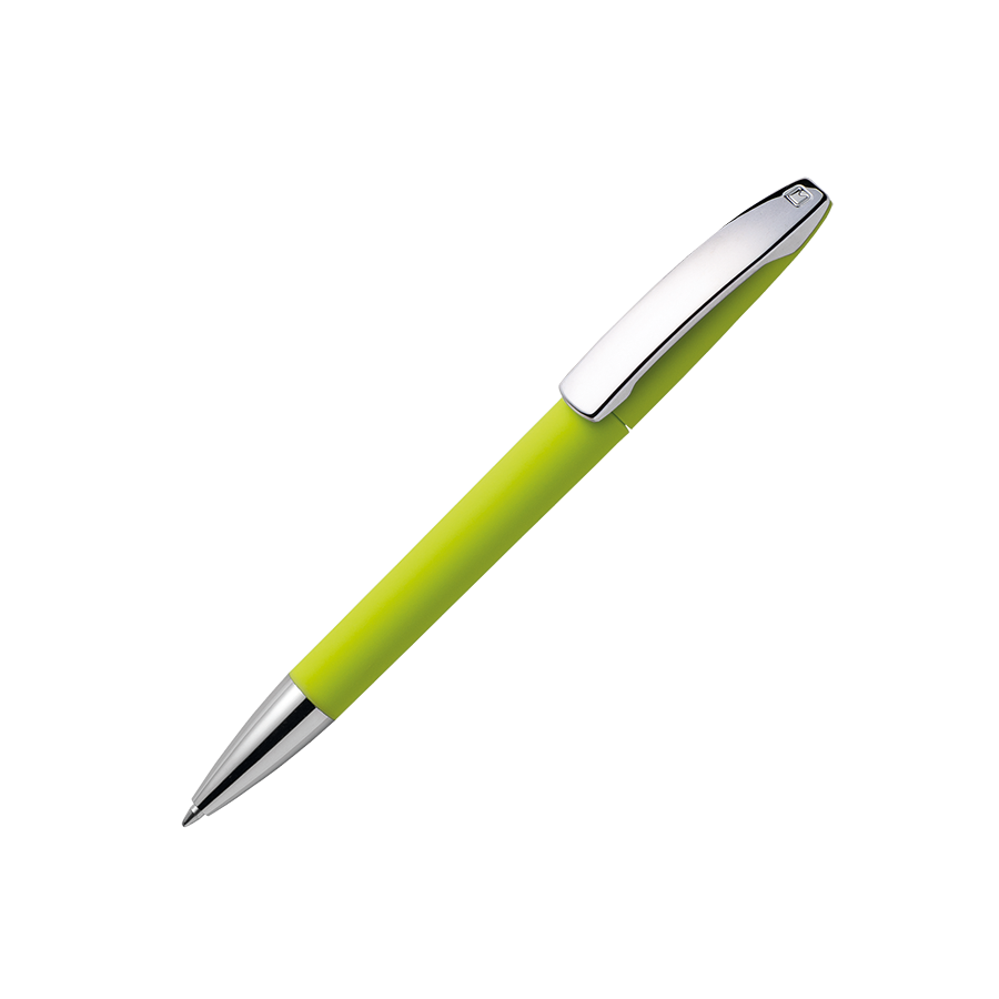 VIEW V1 GOM C CR Kugelschreiber Maxema, Ästhetik und Kraft in VIEW vereint -Die gummierte Oberfläche des schlanken, fast zierlich anmutenden Gehäuses gewinnt noch an Ausstrahlung durch den auffallend kräftigen Clip, wie die Spitze gefertigt aus glänzendem, silberfarbenem Metall. Die Ober- und Unterseite des Gehäuses sind lieferbar in 18 verschiedenen Farben, die bereits ab 2.000 Stück miteinander kombinierbar sind. Er ist ausgestattet mit einer blauschreibenden Großraummine. Dieser Kugelschreiber ist ausschließlich auf dem Clip zu bedrucken oder zu gravieren !