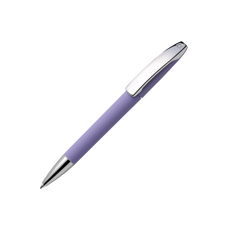 VIEW V1 GOM C CR Kugelschreiber Maxema, Ästhetik und Kraft in VIEW vereint -Die gummierte Oberfläche des schlanken, fast zierlich anmutenden Gehäuses gewinnt noch an Ausstrahlung durch den auffallend kräftigen Clip, wie die Spitze gefertigt aus glänzendem, silberfarbenem Metall. Die Ober- und Unterseite des Gehäuses sind lieferbar in 18 verschiedenen Farben, die bereits ab 2.000 Stück miteinander kombinierbar sind. Er ist ausgestattet mit einer blauschreibenden Großraummine. Dieser Kugelschreiber ist ausschließlich auf dem Clip zu bedrucken oder zu gravieren !