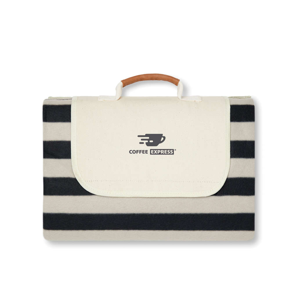 Picknickdecke aus weichem Fleece mit Details aus Baumwollcanvas und Kunstleder. Das Vlies besteht zu 100% aus GRS-zertifiziertem rPET. Die GRS-Zertifizierung gewährleistet eine vollständig zertifizierte Lieferkette der recycelten Materialien. Die Rückseite besteht aus wasserabweisendem PEVA. Die clevere Konstruktion erleichtert das Zusammenklappen und Mitnehmen. Gesamter Recyclinganteil: 54% basierend auf dem Gesamtgewicht des Artikels.