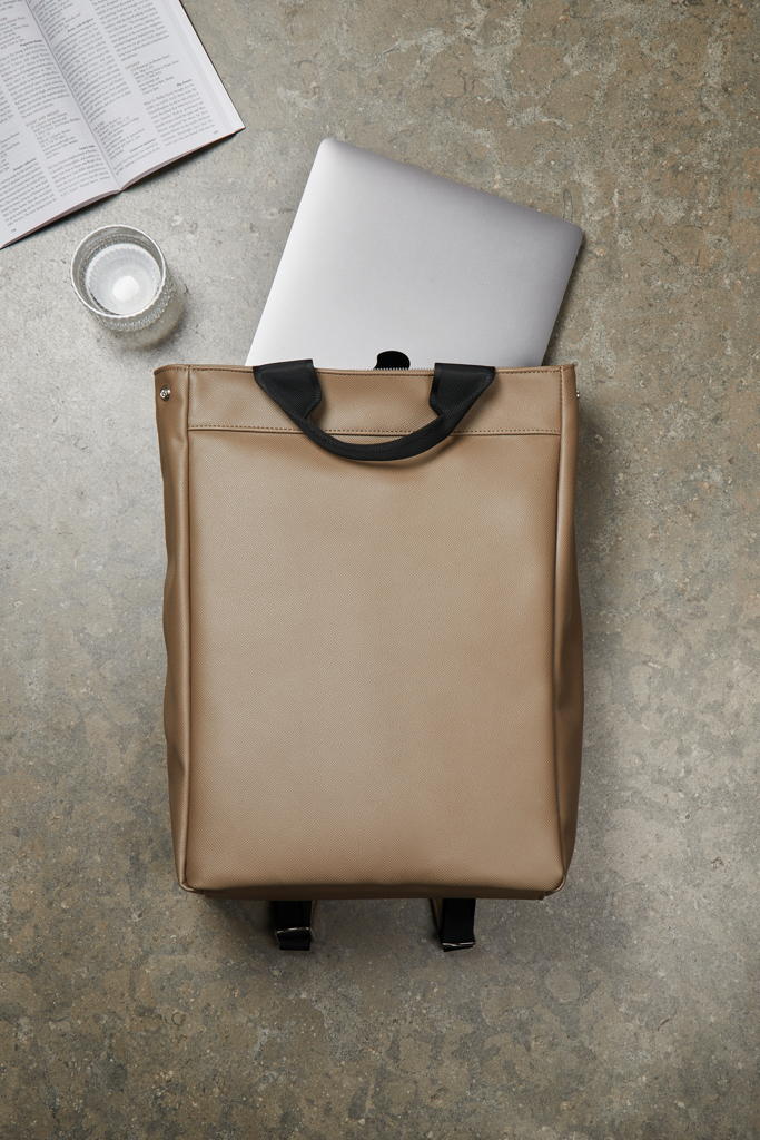 Mit unserem dezenten und exklusiven Rucksack können Sie mühelos vom Büro ins Freie wechseln. Schlankes Design und exklusiver Look. Mit einem gepolsterten Laptopfach für zusätzlichen Schutz. Kann als Tragetasche oder als Rucksack getragen werden, was ihn vielseitig und praktisch für jede Situation macht. Die Außenseite des Rucksacks besteht aus recyceltem PU und ebenso das Innenfutter besteht aus recycelten Materialien. Die Zertifizierung durch RCS (Recycled Claim Standard) garantiert, dass die gesamte Lieferkette der recycelten Materialien zertifiziert ist. Der Gesamtanteil an recyceltem Material basiert auf dem Gesamtgewicht des Produkts. Dieses Produkt enthält 27% RCS-zertifiziertes recyceltes Polyester und 8% RCS-zertifiziertes recyceltes PU. Mit unserem dezenten und exklusiven Rucksack können Sie mühelos vom Büro ins Freie wechseln. Schlankes Design und exklusiver Look. Mit einem gepolsterten Laptopfach für zusätzlichen Schutz. Kann als Tragetasche oder als Rucksack getragen wer