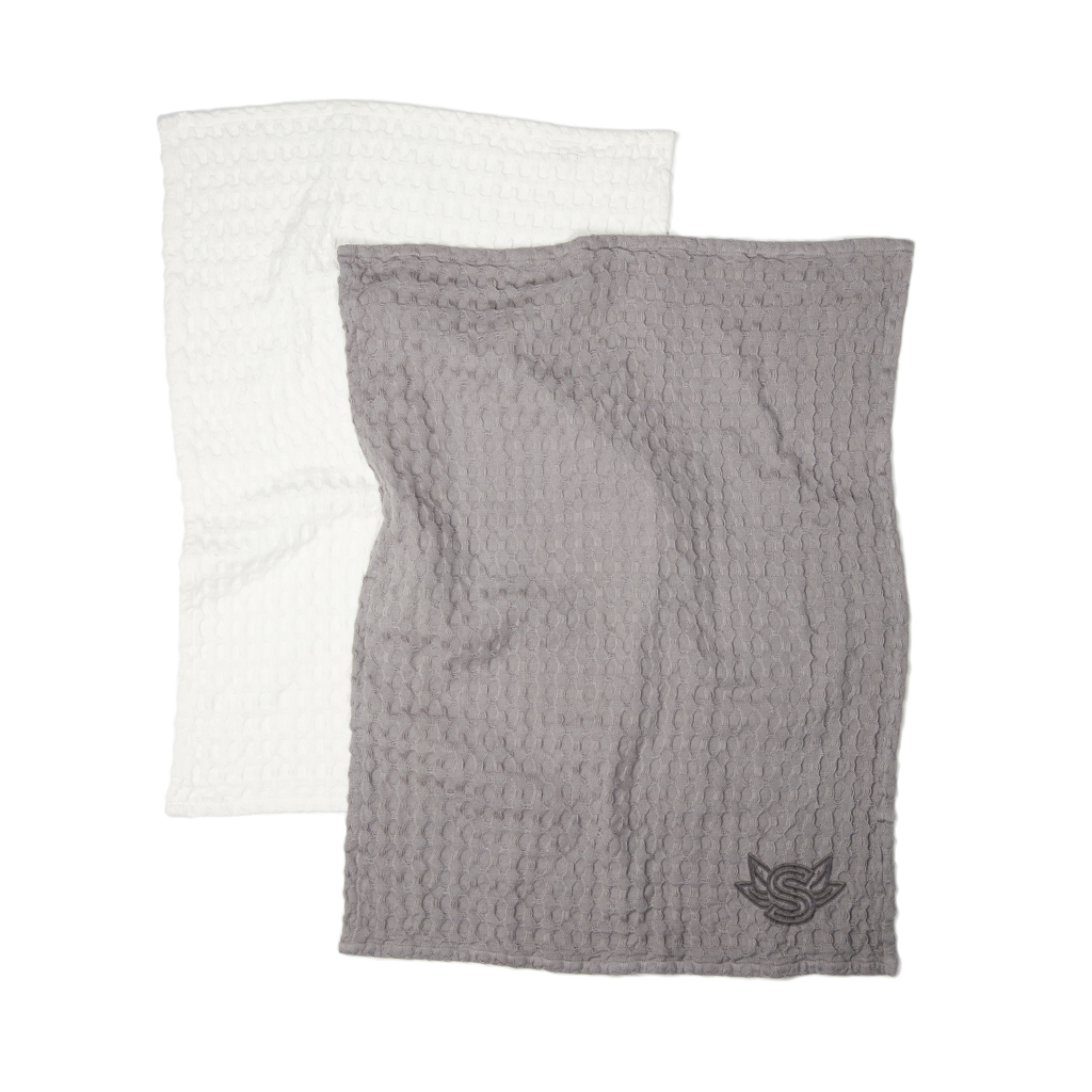 Ein Set aus zwei Geschirrtüchern aus 100 % Baumwolle. Die Geschirrtücher haben ein Waffelmuster, das einen stilvollen Look mit Qualität verbindet – perfekt als Trockentuch oder Handtuch in der Küche.