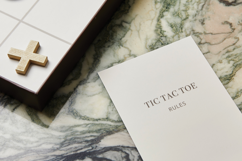 "Klassisches ‚Drei in einer Reihe‘ - Spiel; doch viel lustiger und in einem hübscheren Design. Das Spiel ist in einer schönen Aufbewahrungsbox verpackt, die im eigenen Heim zu einem schönen Einrichtungsdetail wird. "