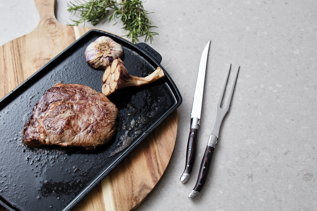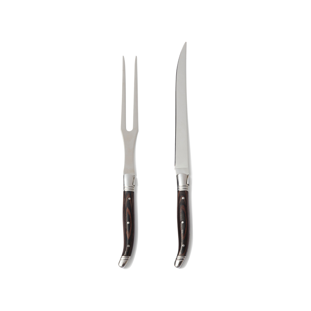 Tranchier-Set mit Messer und Gabel im typisch französisch inspiriertem Bistrostil. Schwarzer Holzgriff und Klinge aus hochqualitativem Edelstahl. Verpackt in einer exklusiven Geschenkbox.