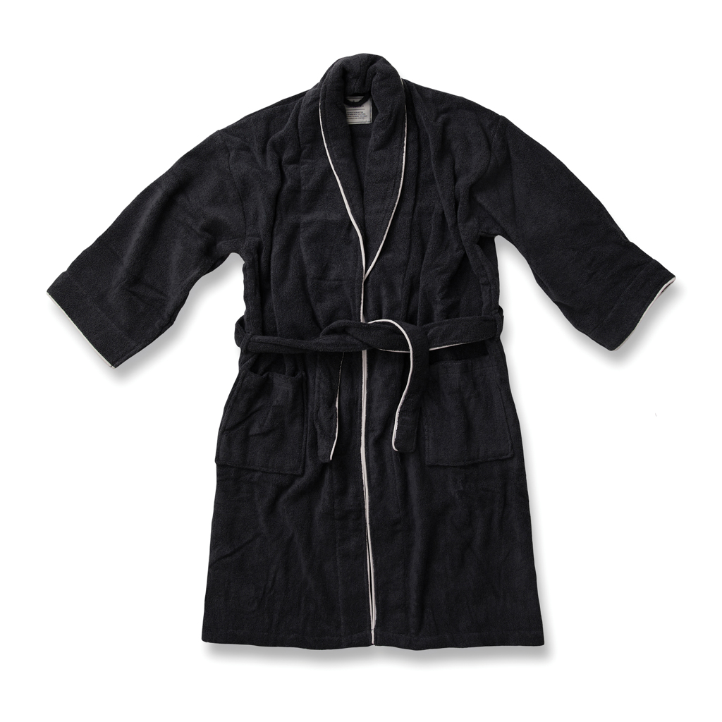 Luxuriöser Bademantel aus 100 % Baumwolle. Der Bademantel ist ein klassisches Modell mit extra breitem Kragen und Gürtel an der Taille. Er verfügt zudem über einige schöne Details, wie geschlossene Nähte und kontrastierende Paspeln am Kragen. Hergestellt aus einer langen Baumwollfaser mit umgedrehten Fäden. Das Ergebnis ist ein unglaublich weicher Bademantel, den Sie nie wieder ausziehen möchten. OEKO-TEX® STANDARD 100. 09. HIN.68091. Hohenstein HTTI.
